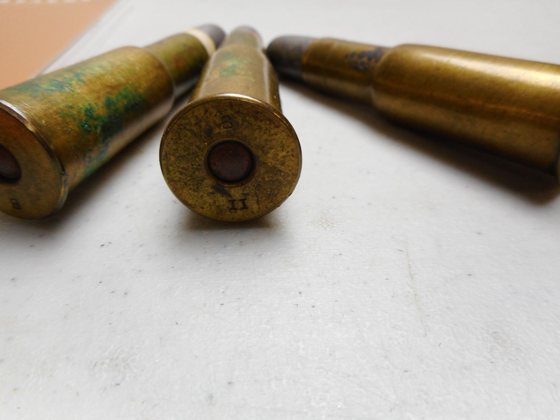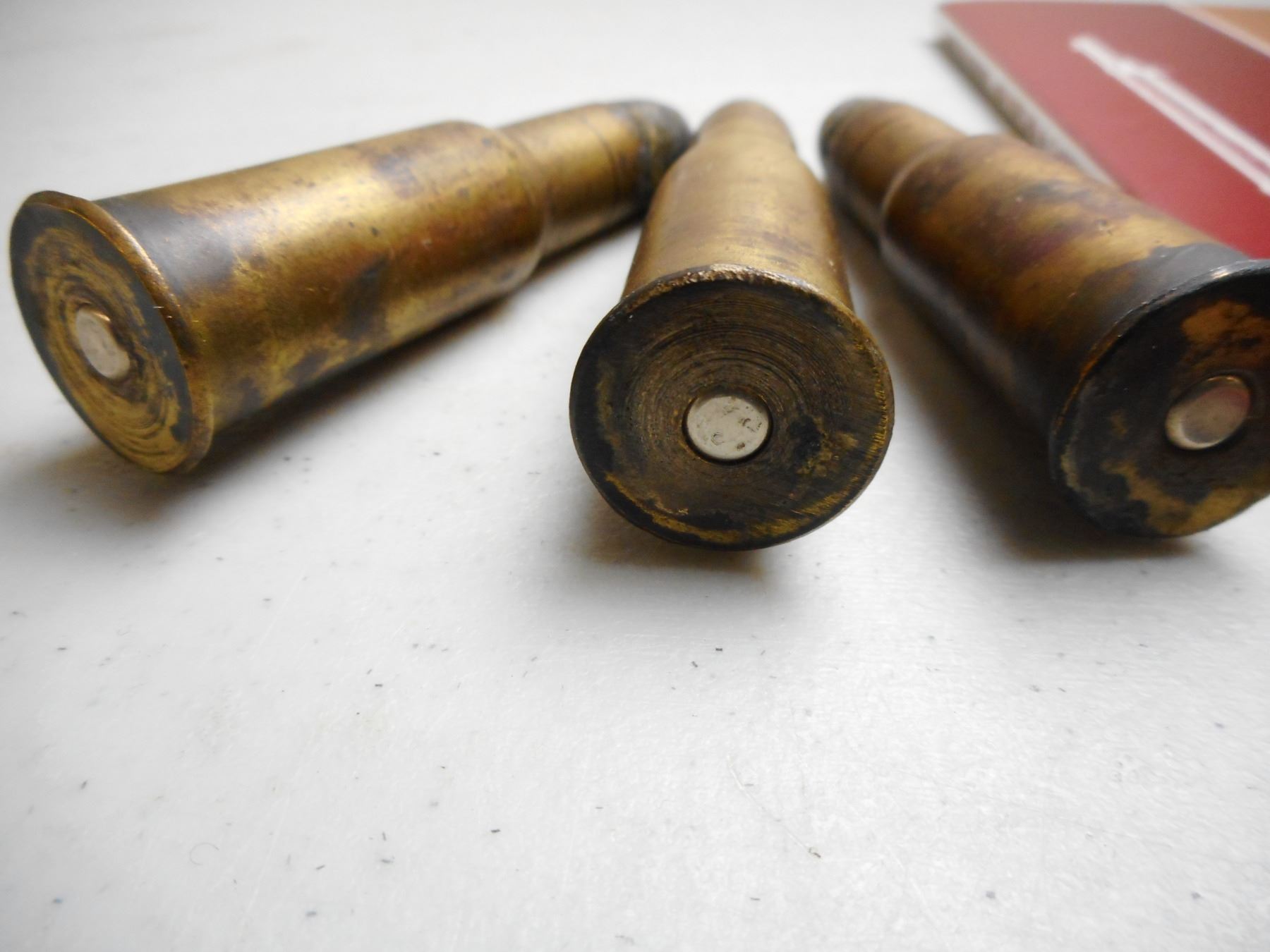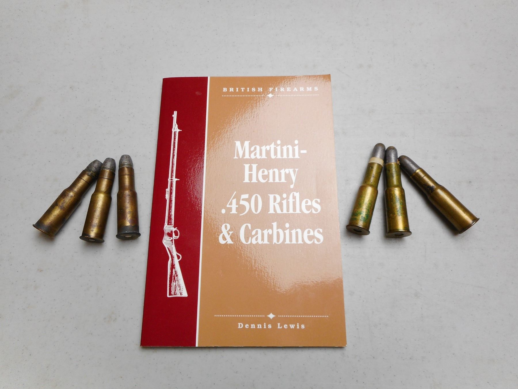 577/450 MARTINI HENRY AMMO & BOOK , 6 RNDS SOME HEADSTAMPED G.K. B, (1) BRITISH FIREARMS MARTINI HENRY .450 RIFLES & CARBINES