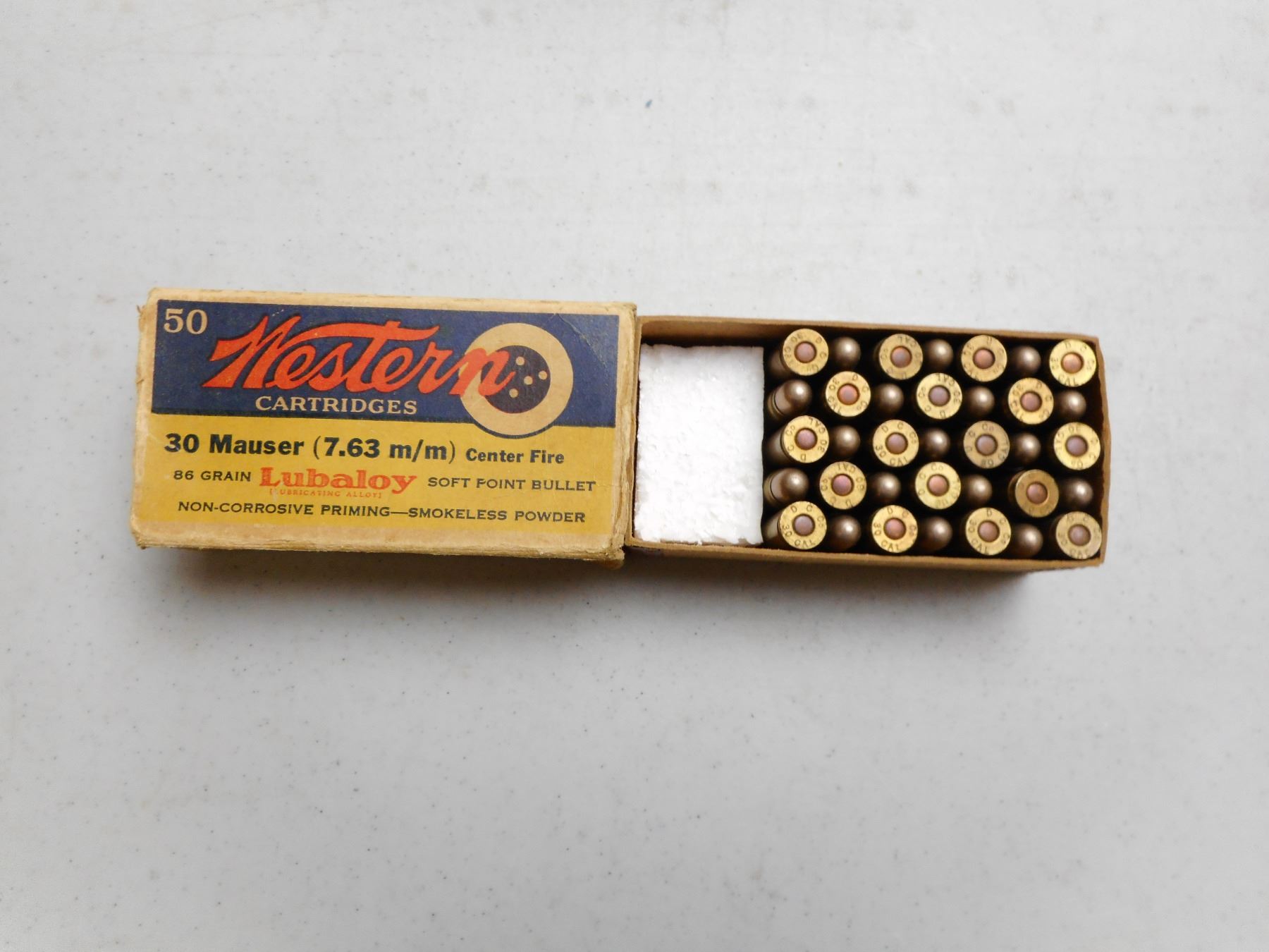 WESTERN 7.63MM (.30) MAUSER AMMO , 35 RNDS 86 GRAIN LUBABLOY SP