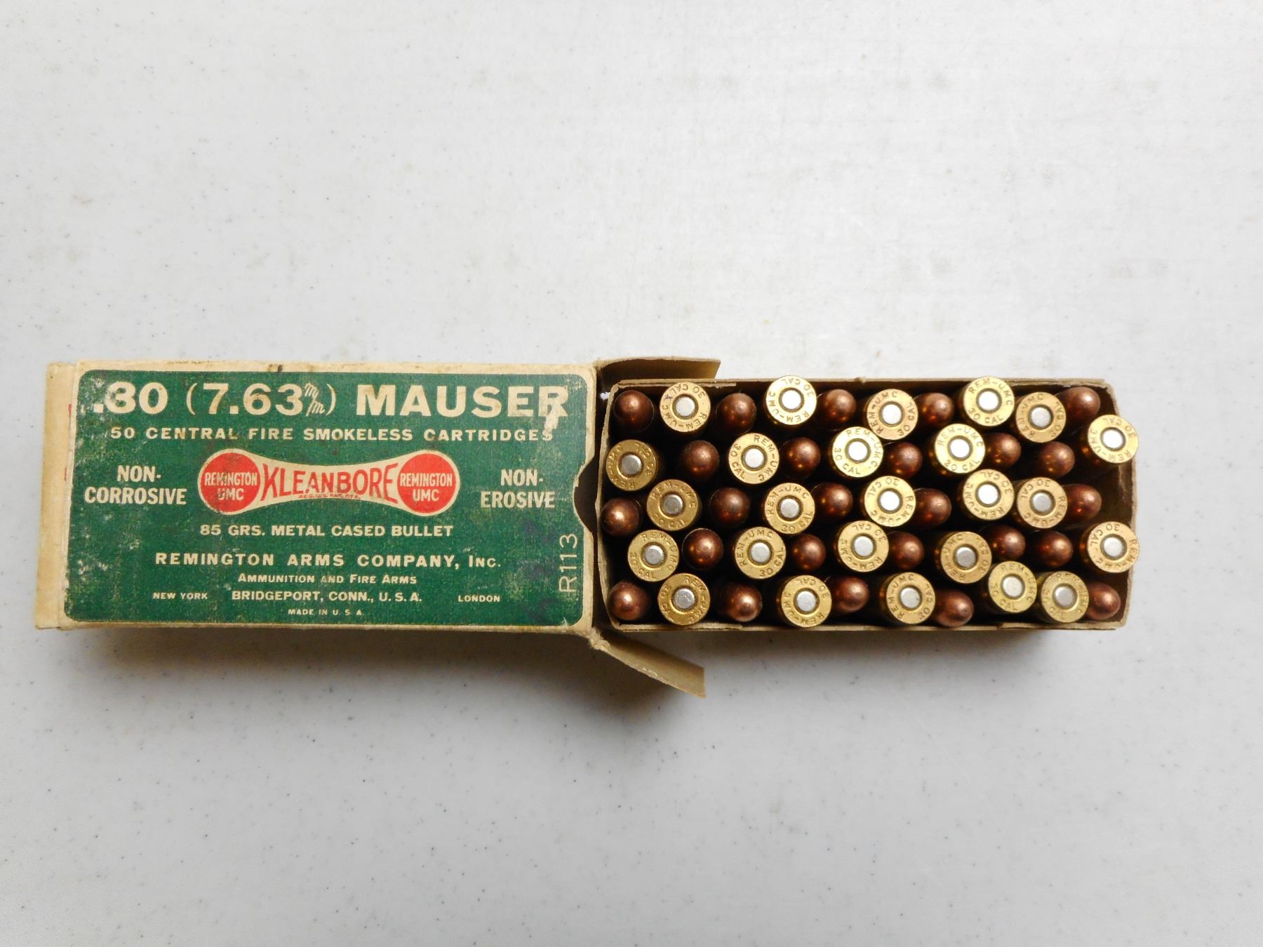 REMINGTON 7.63MM (.30) MAUSER AMMO , 50 RNDS 85 GRAIN METAL CASED
