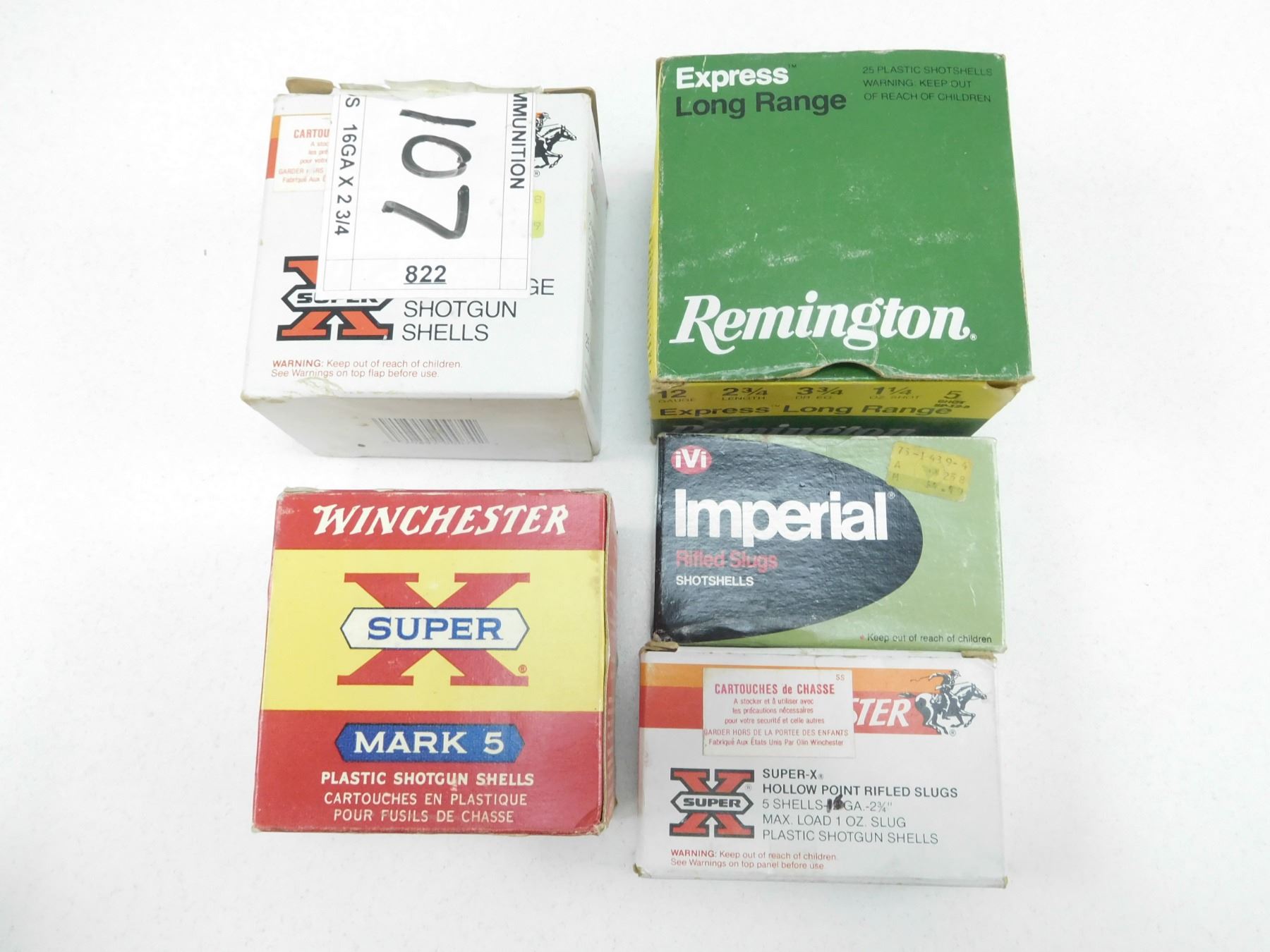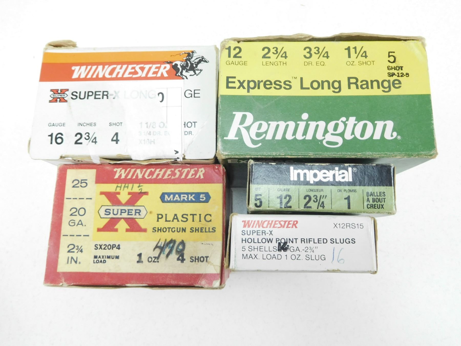 ASSORTED SHOTGUN AMMO , 63 RNDS MIXED IN BOXES INCLUDES 12 GA, 20 GA, 16 GA