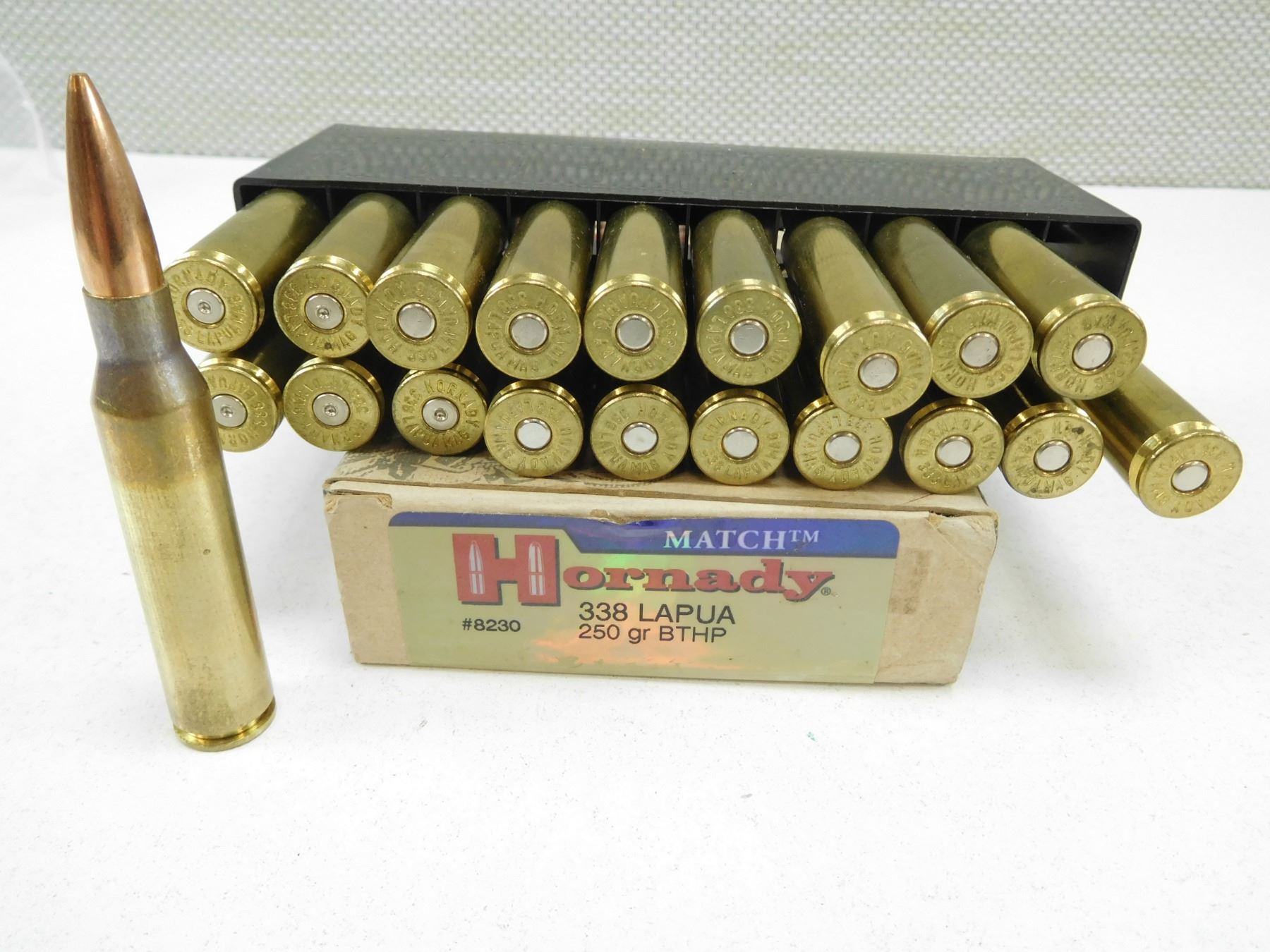 HORNADY 338 LAPUA AMMO , 15 RNDS 5 BRASS 250 GRAIN BTHP