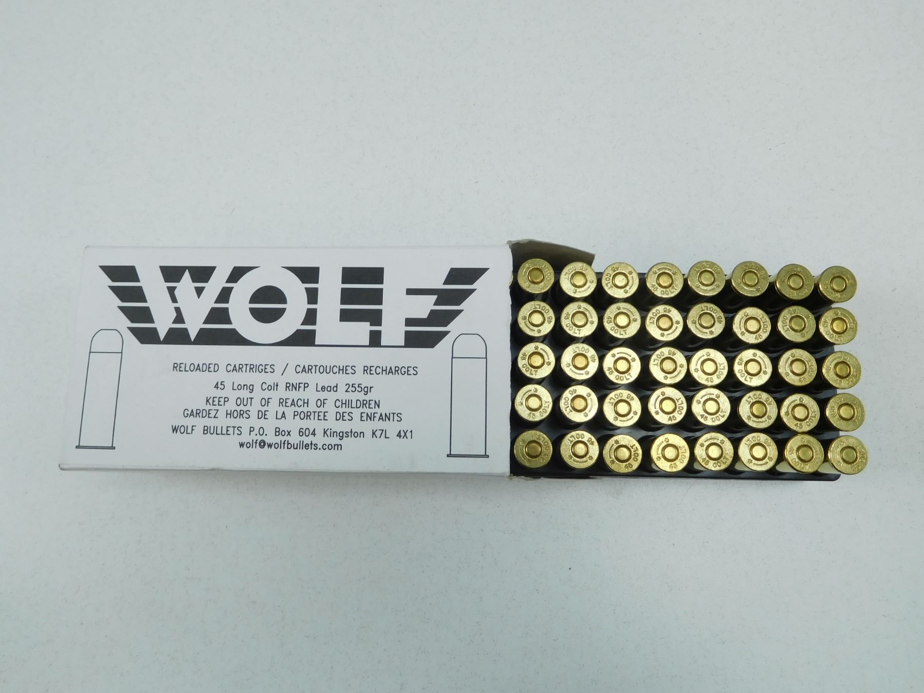 WOLF 45 LONG COLT RELOADS , 50 RNDS RNFP LEAD 225 GRAIN