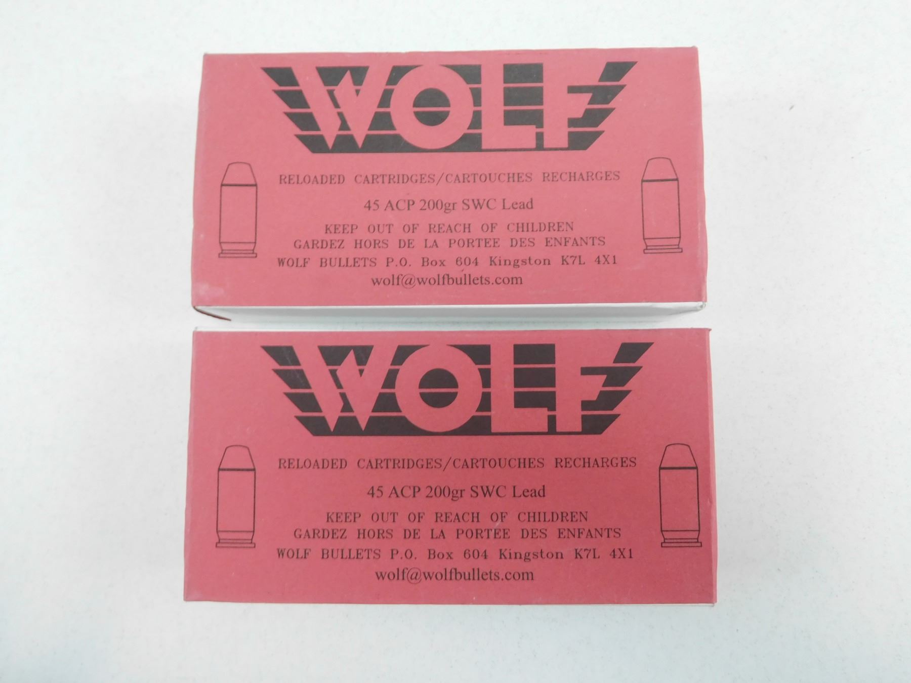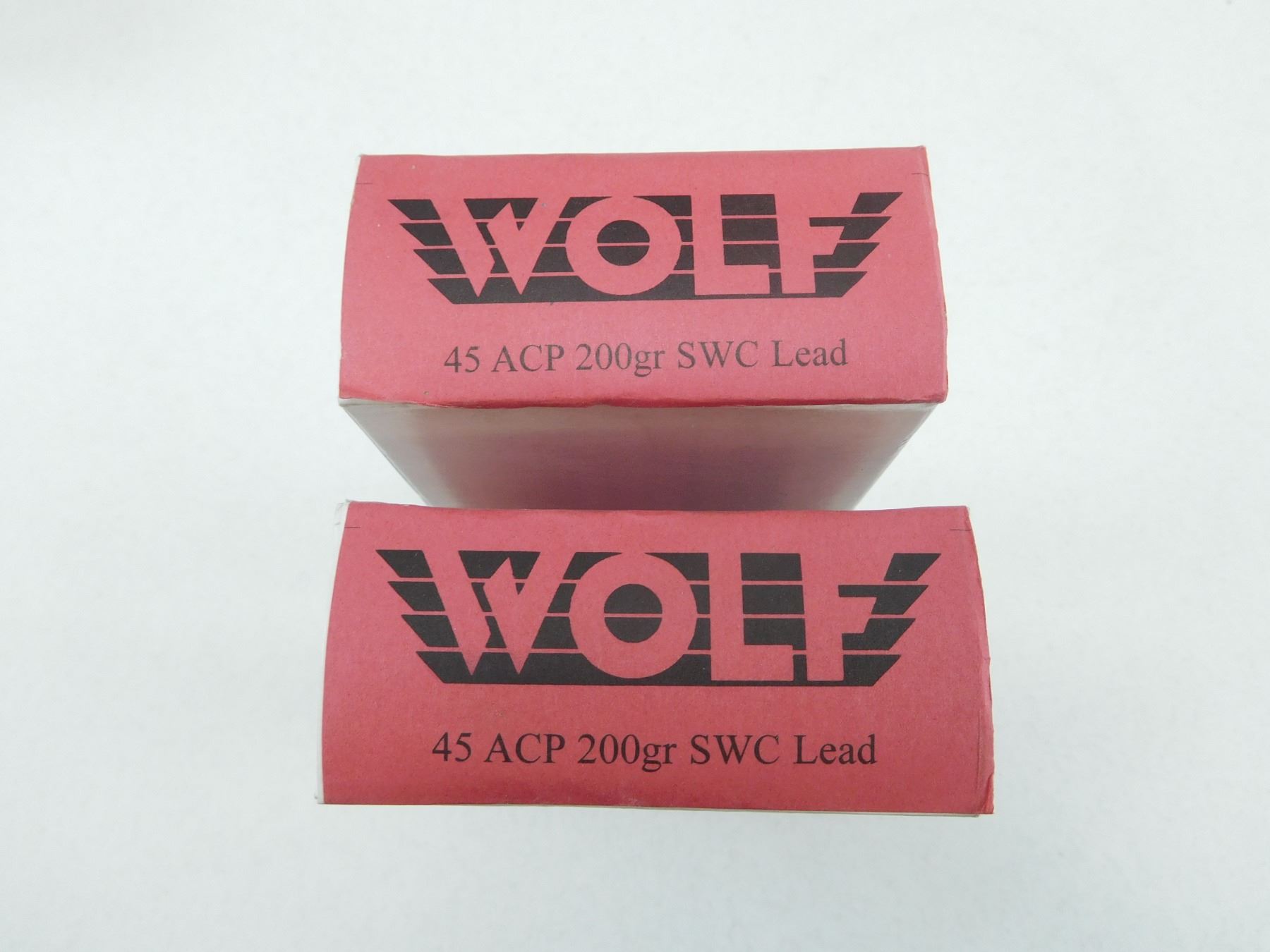 WOLF 45 ACP RELOADS , 100 RNDS 200 GRAIN SWC, UNOPENED