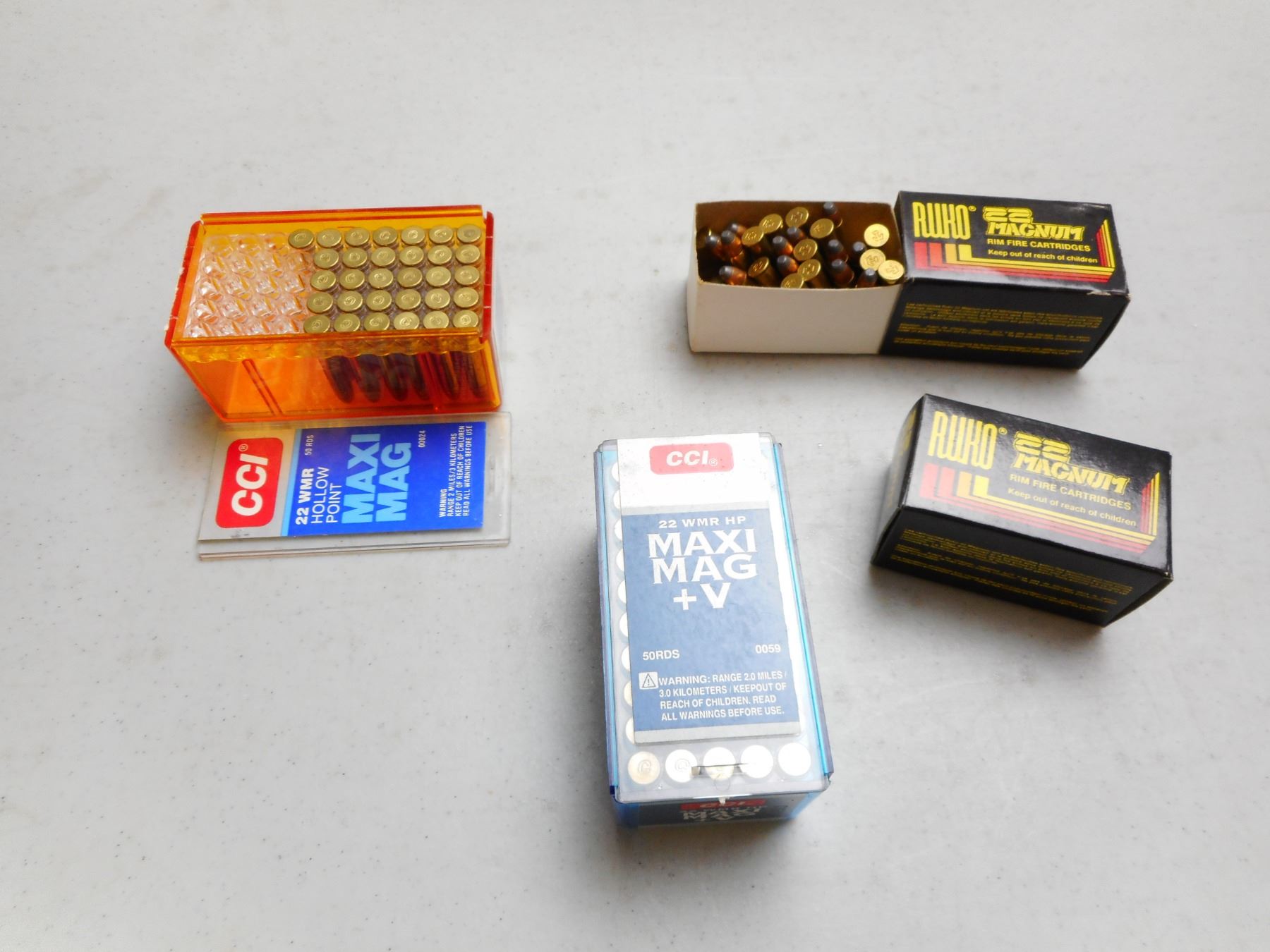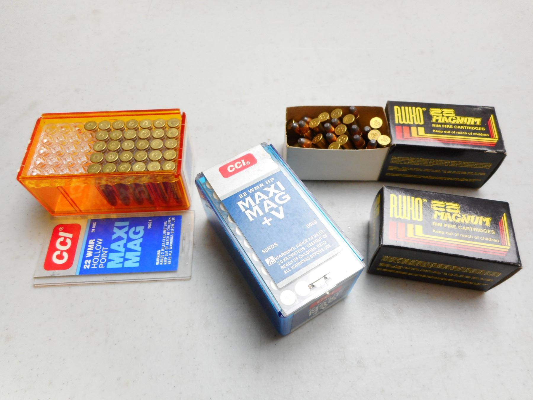 ASSORTED 22 WIN MAG AMMO , 160 RNDS INCLUDES RUKO 40 GRAIN, CCI MAXI MAG +V, & CCI MAXI MAG