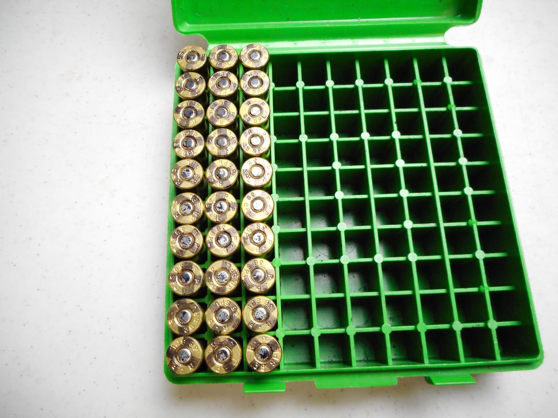 ASSORTED 38 SPL RELOADS , 140 RNDS INCLUDES PLASTIC AMMO CASES