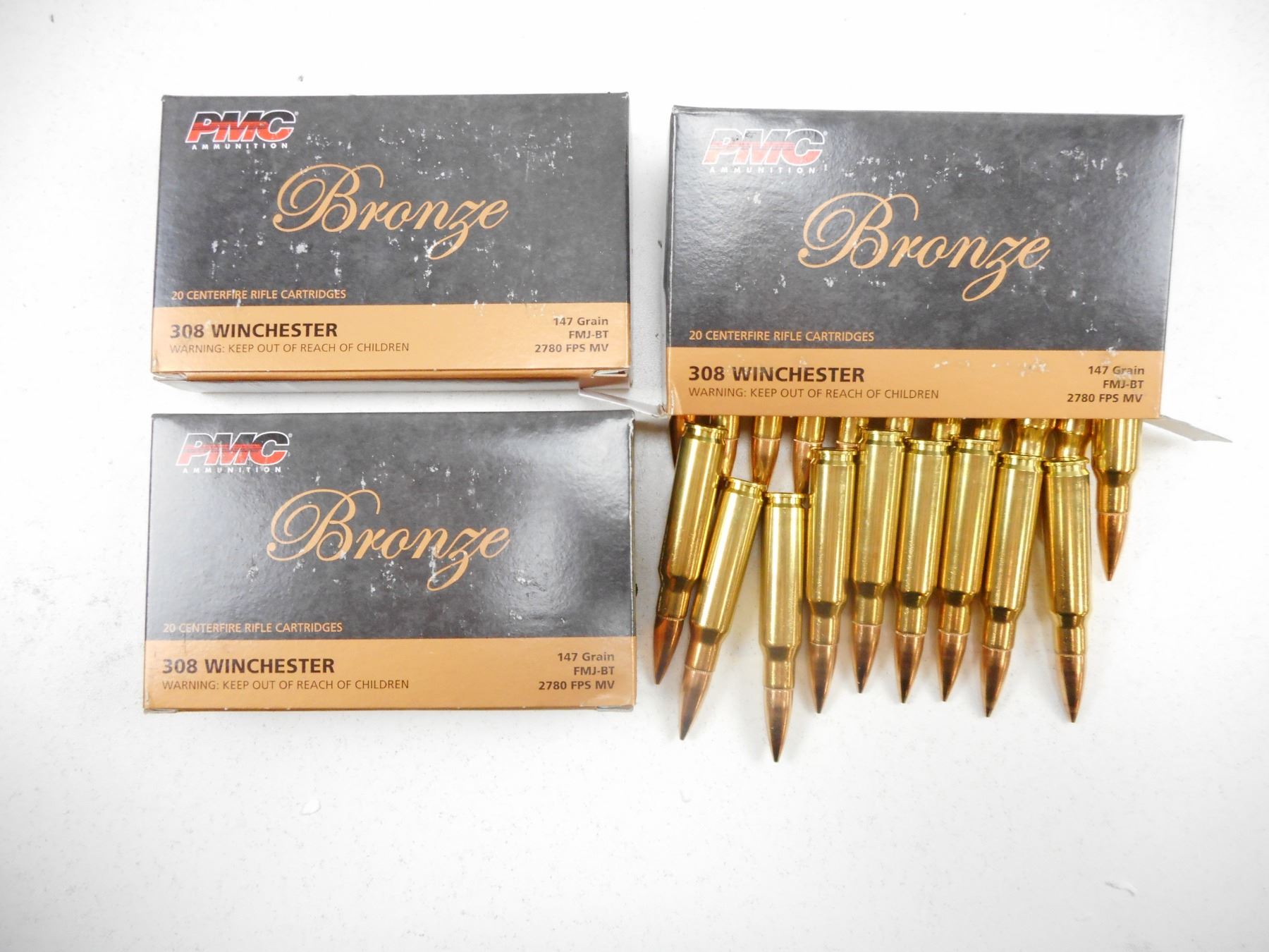 PMC BRONZE 308 WIN AMMO , 60 RNDS 147 GRAIN FMJ-BT