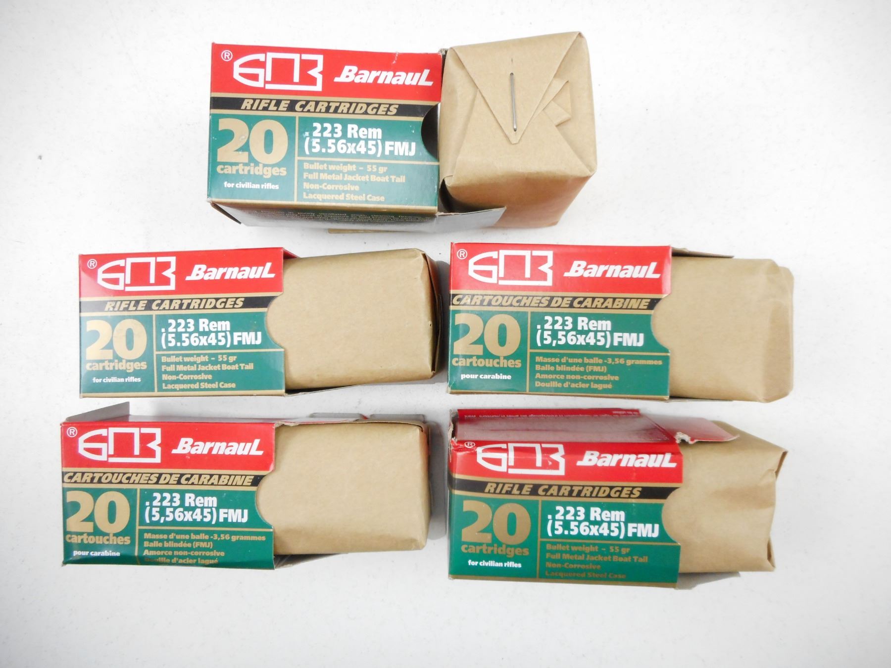 BARNAUL 223 REM (5.56X45) AMMO , 100 RNDS 55 GRAIN FMJ-BOAT TAIL, STAPLED PACKAGES