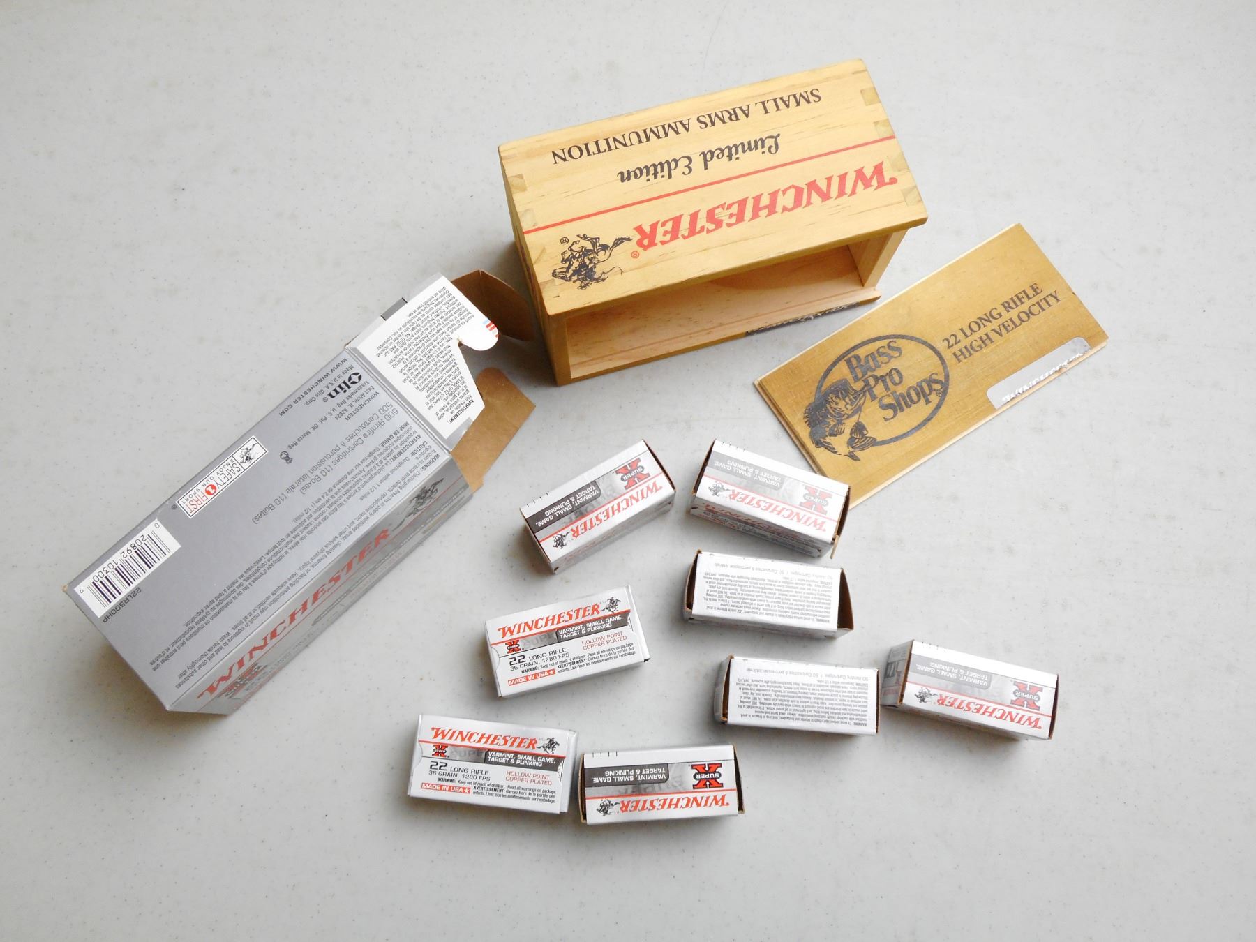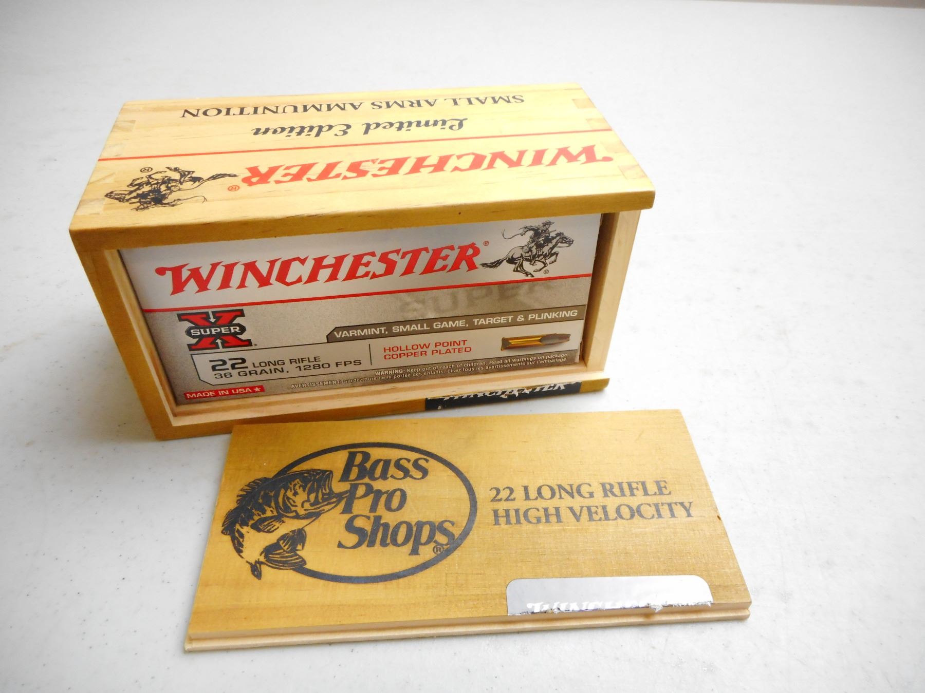 WINCHESTER 22 LR AMMO , 399 RNDS 36 GRAIN HOLLOW POINT COPPER PLATED, IN LIMITED EDITION BASS PRO SHOP BOX