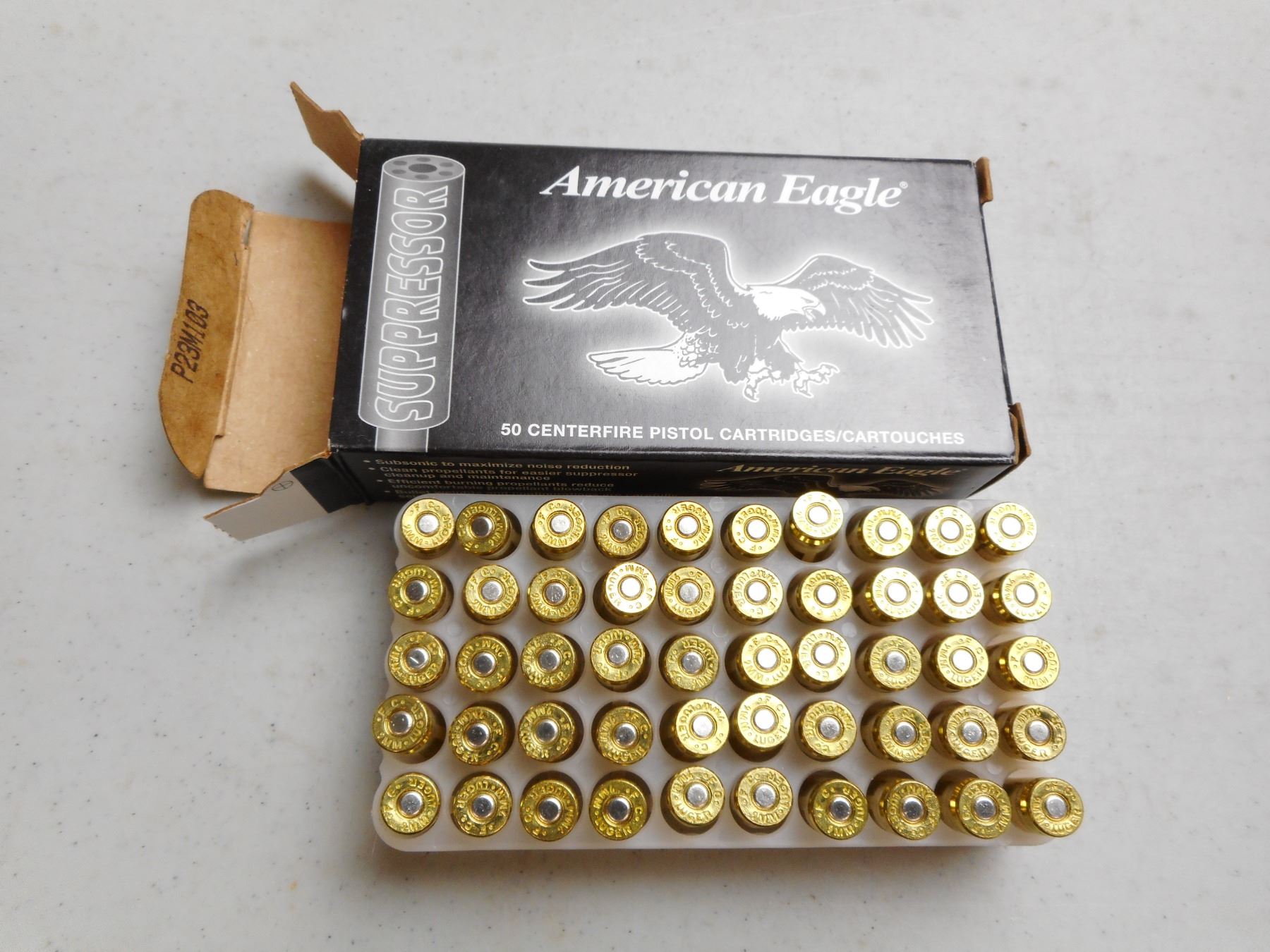 AMERICAN EAGLE 9MM LUGER AMMO , 50 RNDS 124 GRAIN FMJ SUBSONIC