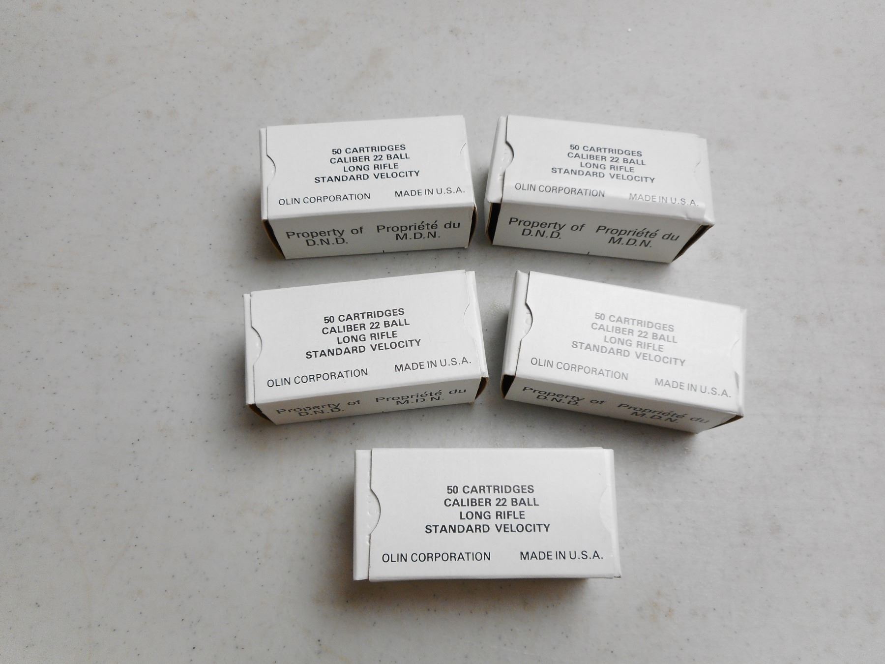 OLIN CORP. 22 BALL LR AMMO , 250 RNDS STD VELOCITY PROPERTY OF D.N.D.