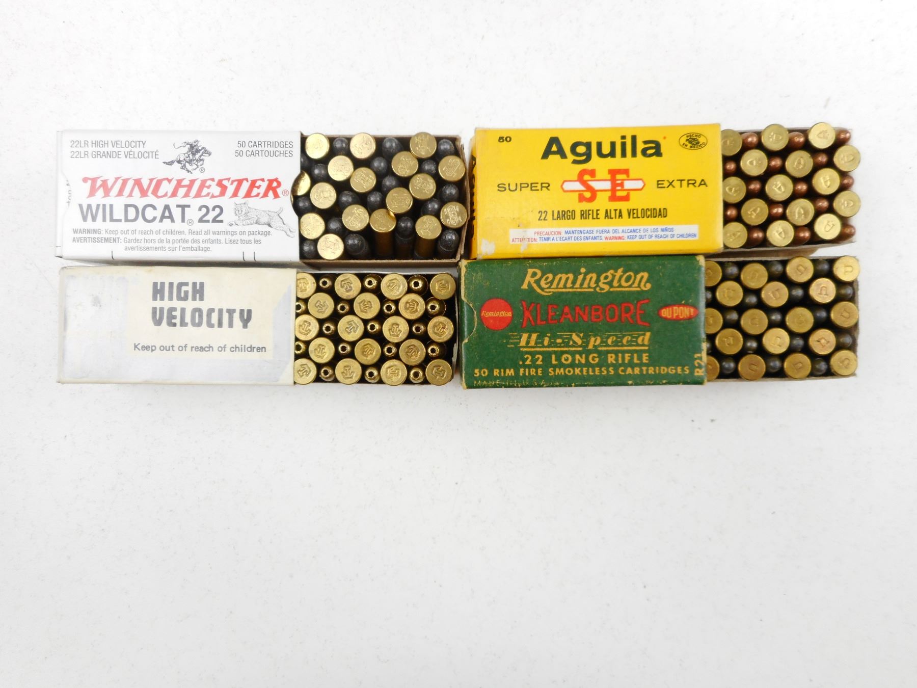 ASSORTED 22 LR AMMO , 200 RNDS INCLUDES WINCHESTER WILDCAT, REMINGTON KLEANBORE, AGUILA SE, & RUKO HIGH VELOCITY