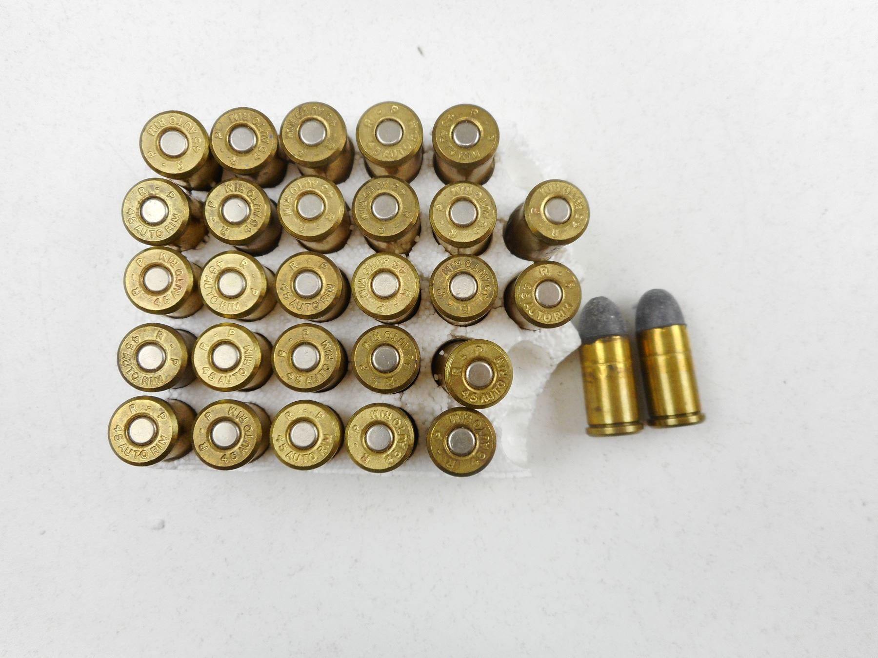 REMINGTON 45 AUTO RIM AMMO , 29 RNDS 15 BRASS 230 GRAIN LEAD