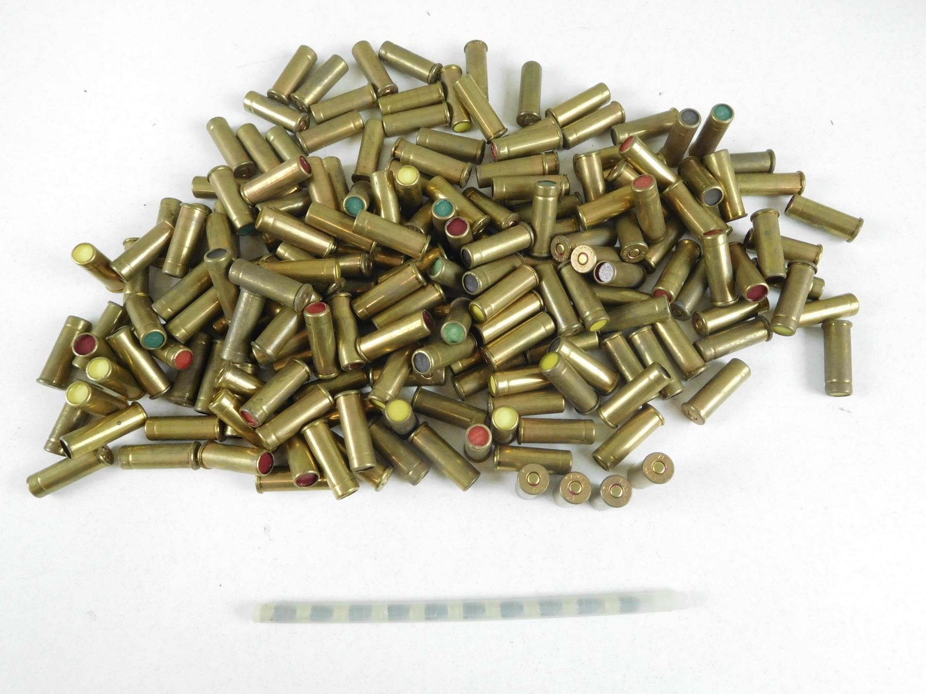 ASSORTED 357 MAGNUM BLANKS & CASELESS 22 AMMUNITION , 199 RNDS INCLDUES BROWN 8 GR, GREEN 9 GR, YELLOW 10.3 GR, & RED 11.4 GR CHARGES FOR RAMSET, (1) STICK OF 22 AMMO