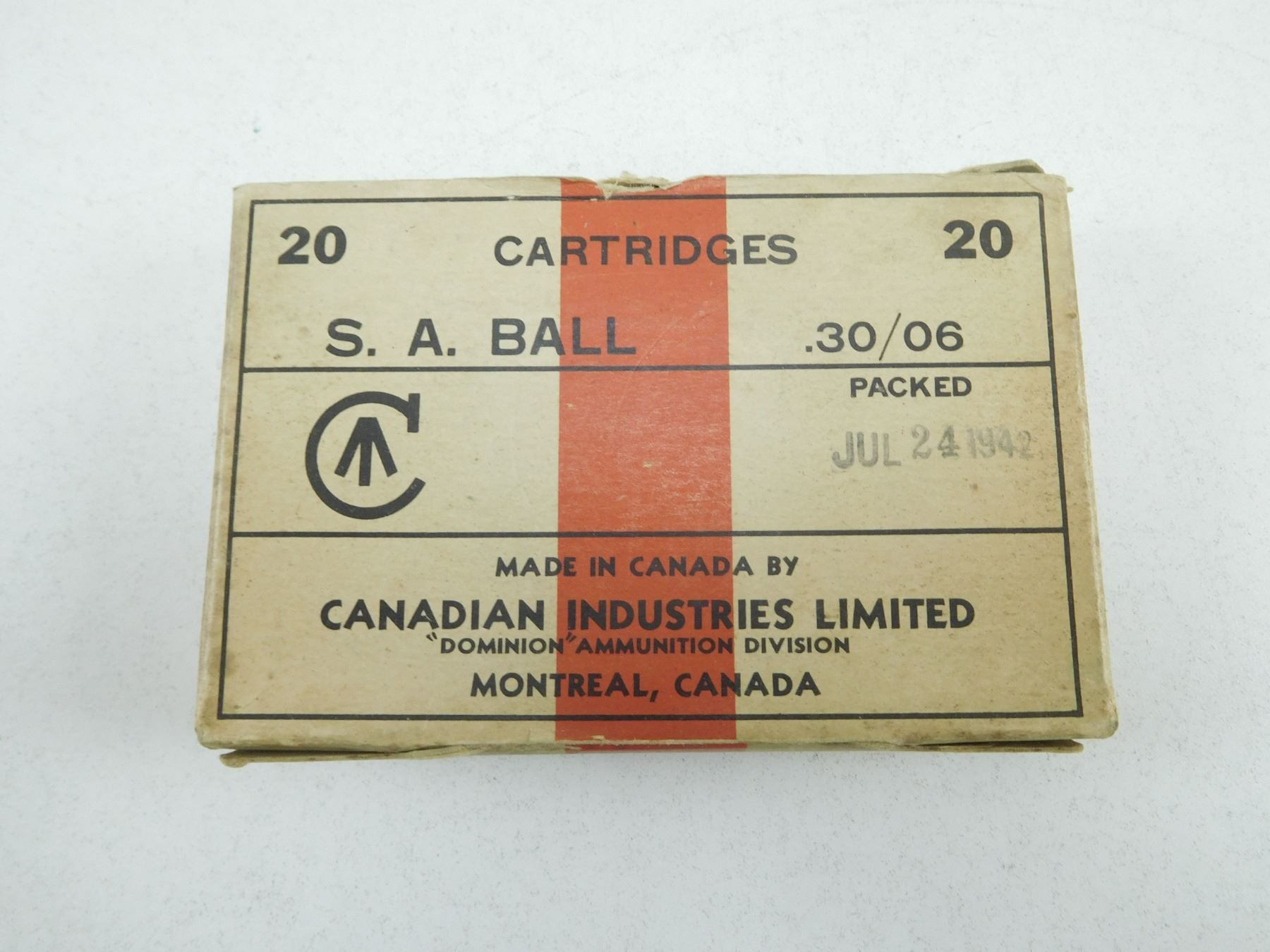 CIL S.A. BALL 30/06 AMMO , 20 RNDS PACKED JUL 24 1942