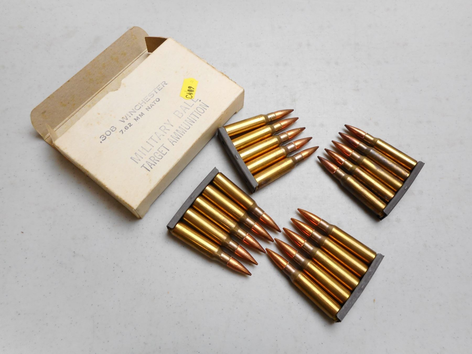MILITARY SURPLUS 7.62MM NATO (308 WIN) AMMO , 20 RNDS MILITARY BALL TARGET AMMUNITION ON STRIPPER CLIPS