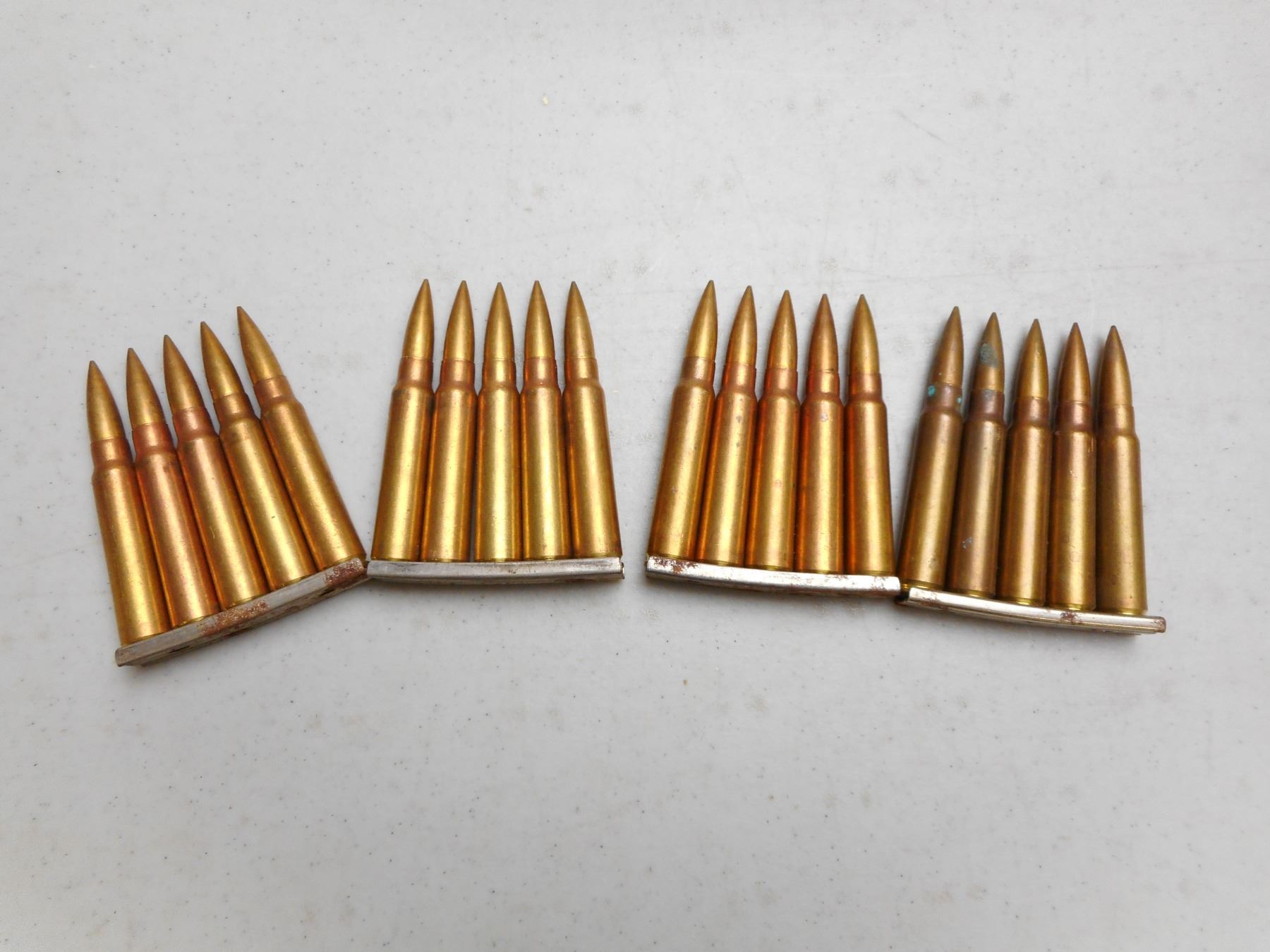 7.65 X 53 MAUSER BALL AMMO , 20 RNDS DATED 1947, IN STRIPPER CLIPS