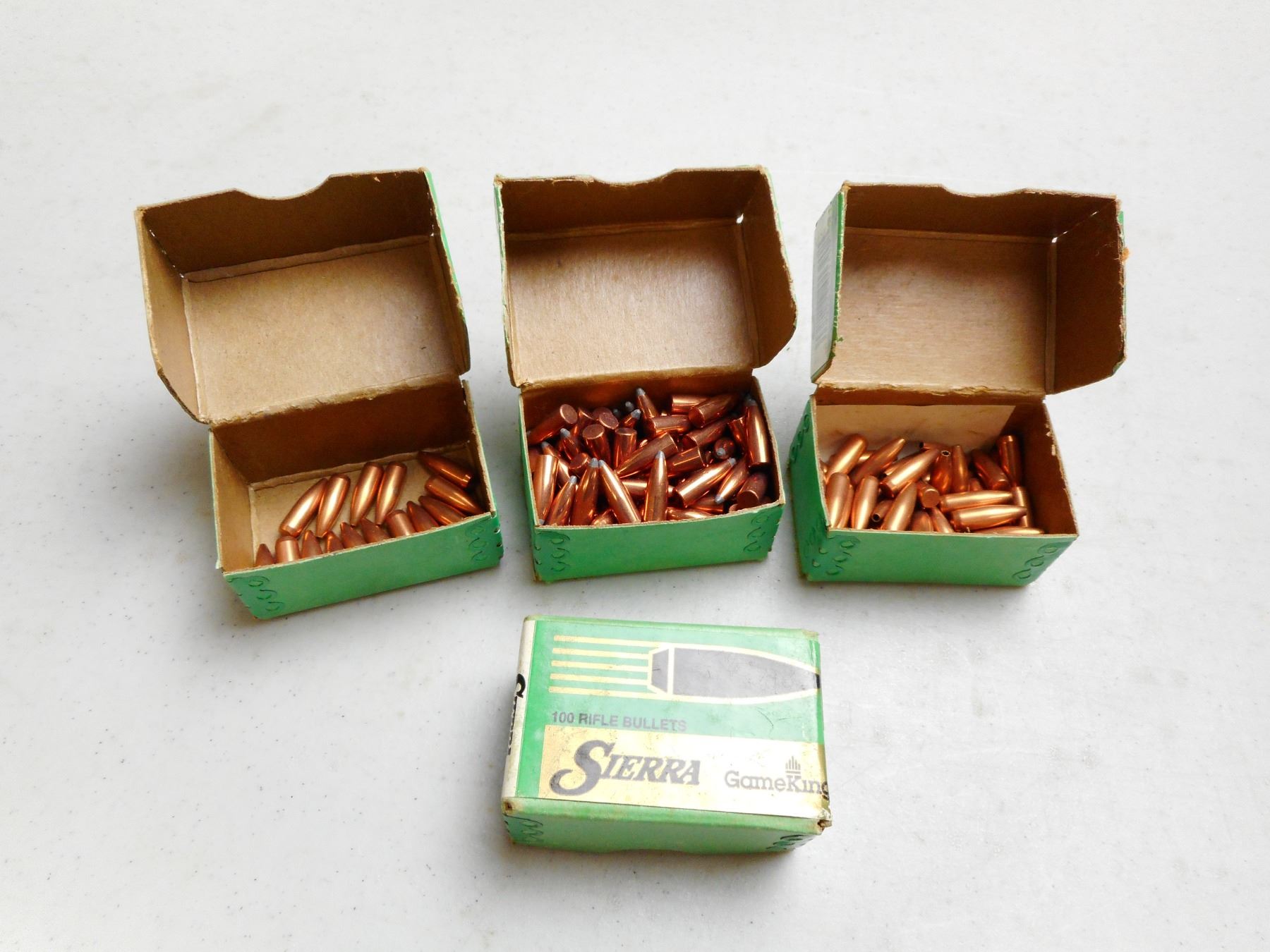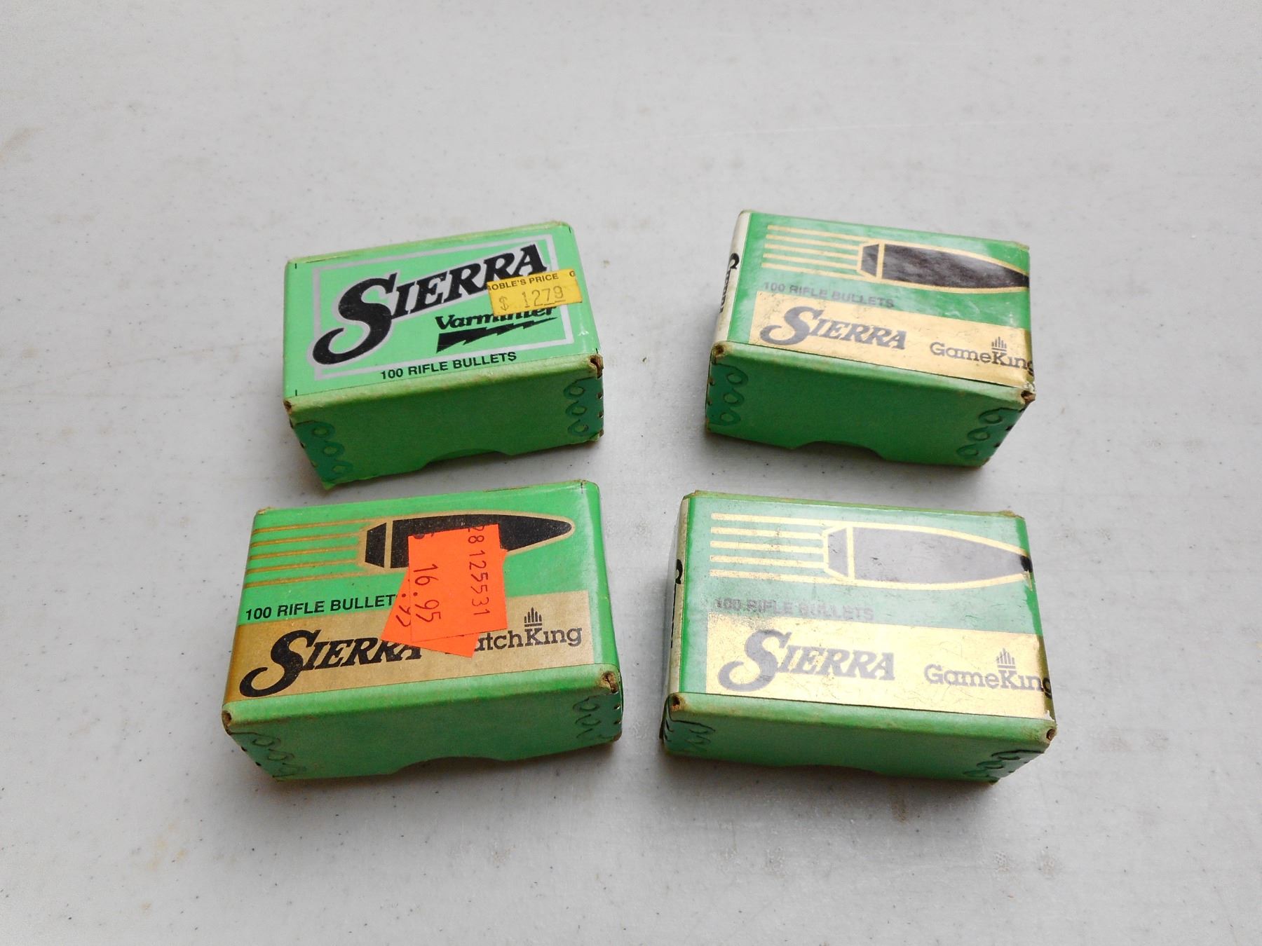 SIERRA 22 CAL BULLETS , APPROX. 235 BULLETS INCLUDES GAME KING 55 GRAIN, MATCH 52 GRAIN, & VARMINTER 55 GRAIN