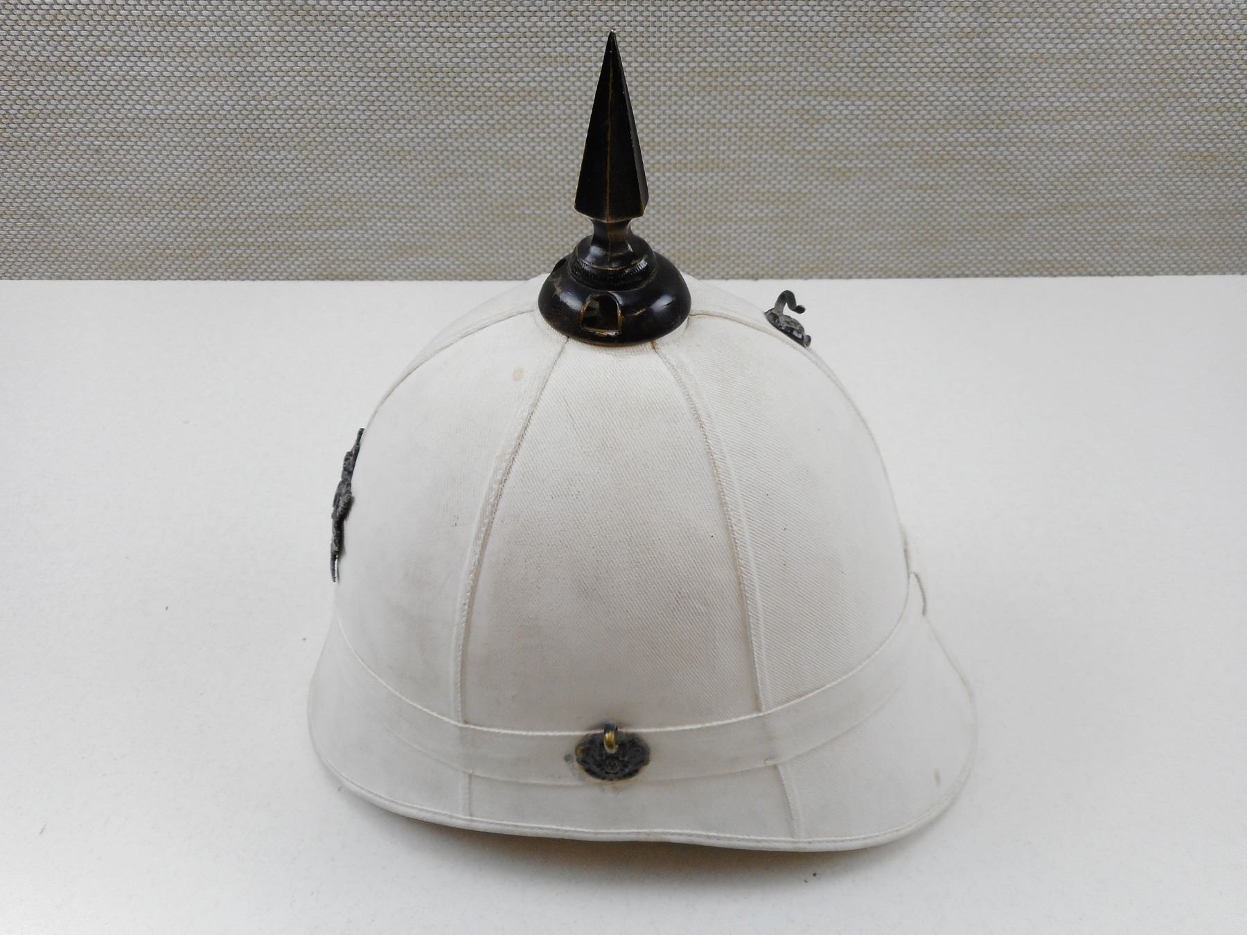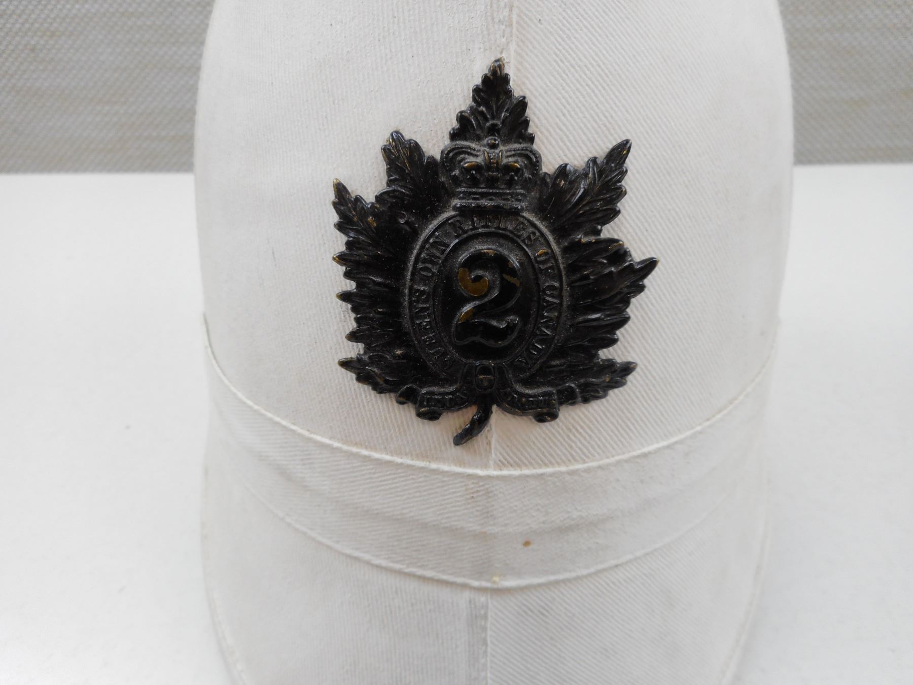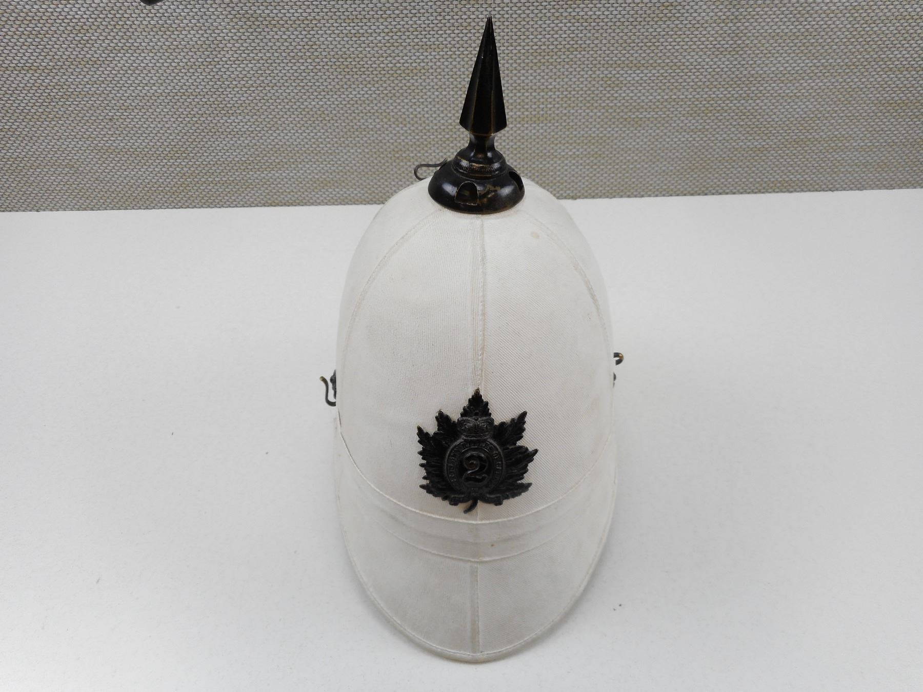 CANADIAN SUN HELMET , QUEEN'S OWN RIFLES OF CANADA CAP BADGE, BOER WAR ISSUE, WITH SPIKE & BOSSES