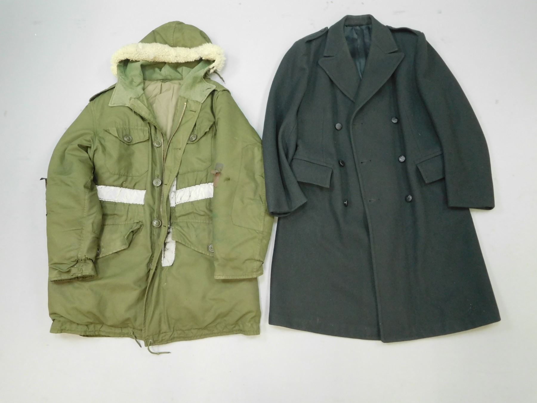 MILITARY WINTER COATS , (1) GREEN PARKA, (1) MEN'S CF OVER COAT, WOOL MARCH 1969, LOT OF 2