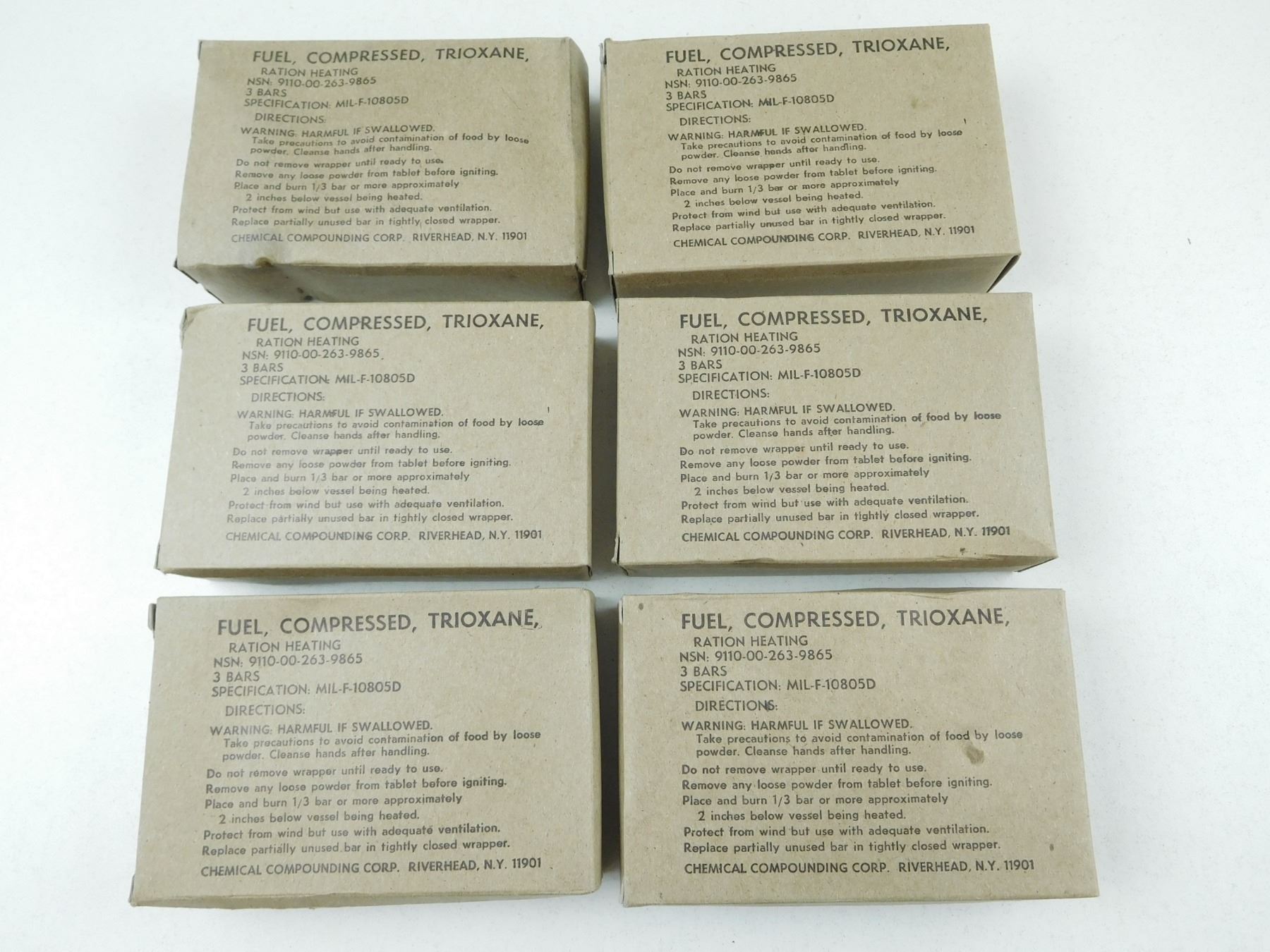 RATION HEATING , FUEL, COMPRESSED, TRIOXANE, LOT OF 6