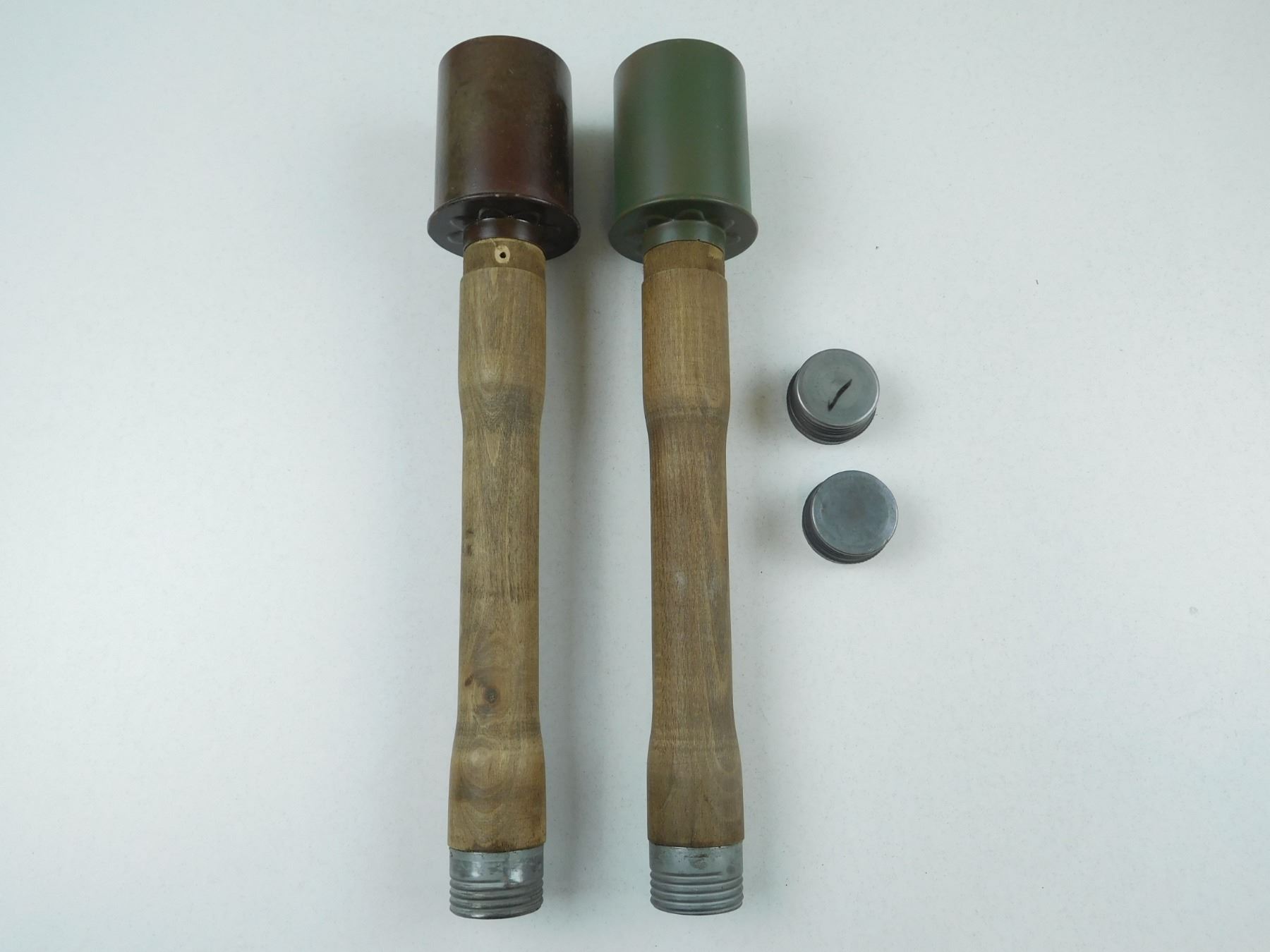 GERMAN STICK GRENADE , (2) STICKS, (4) TOPS