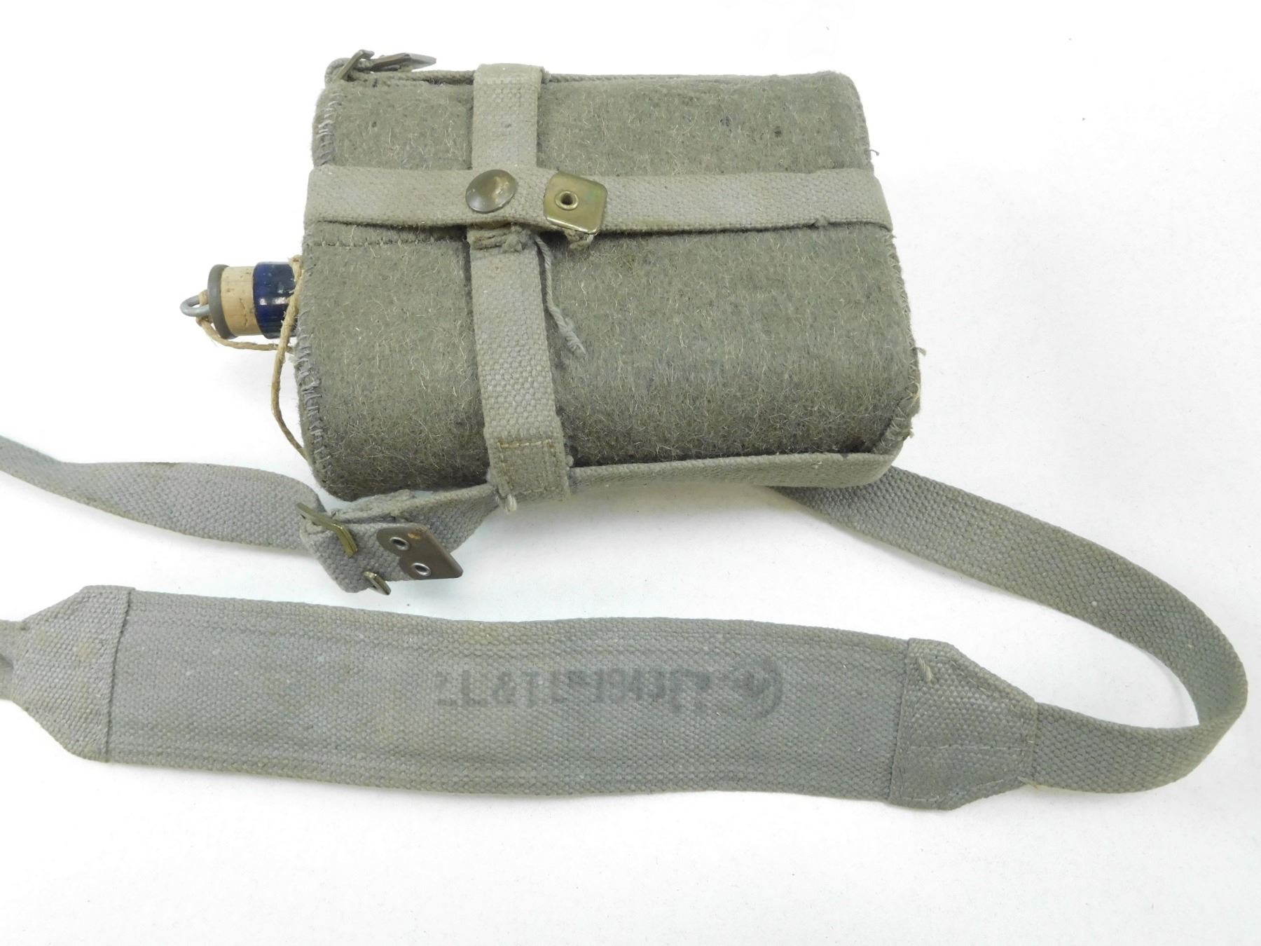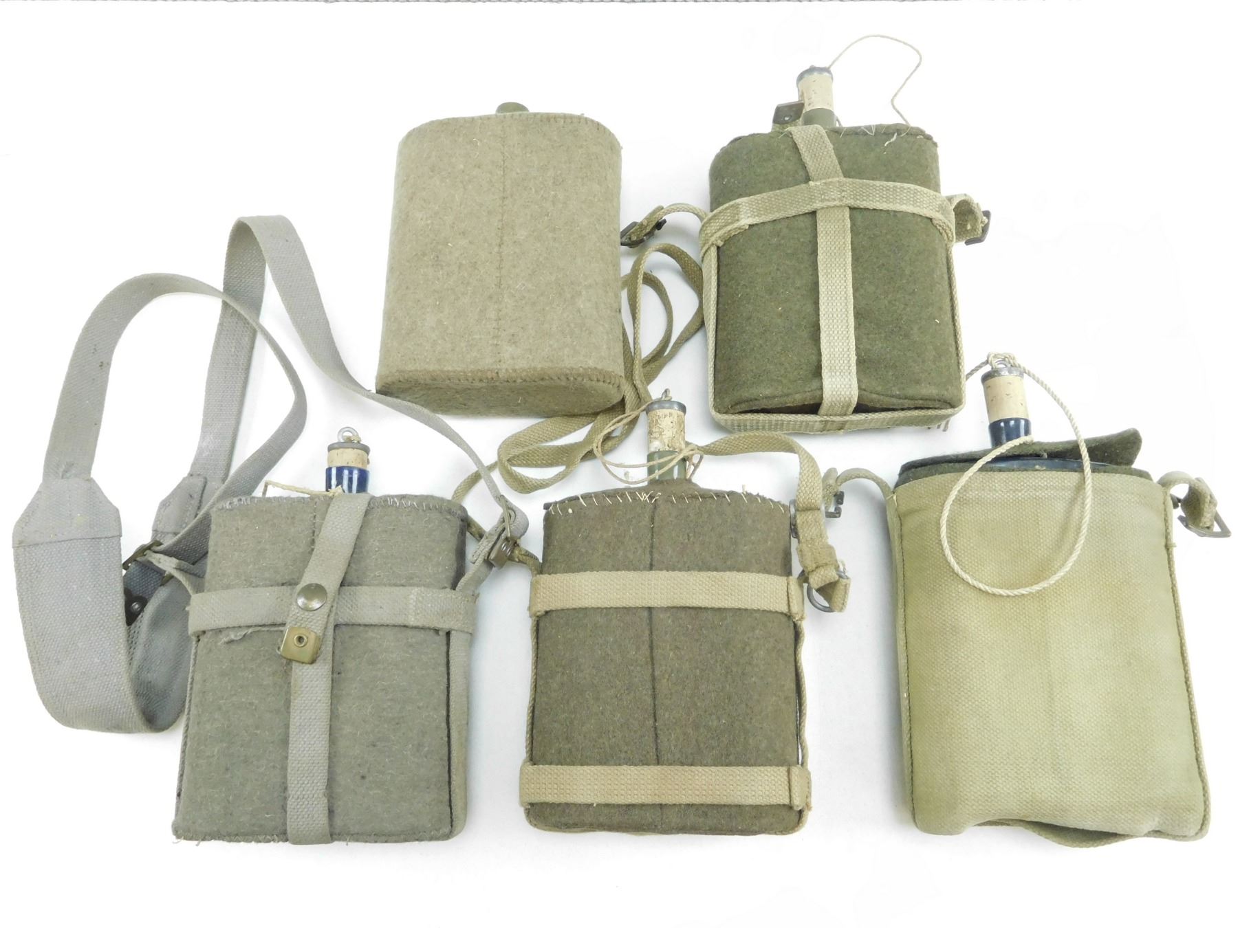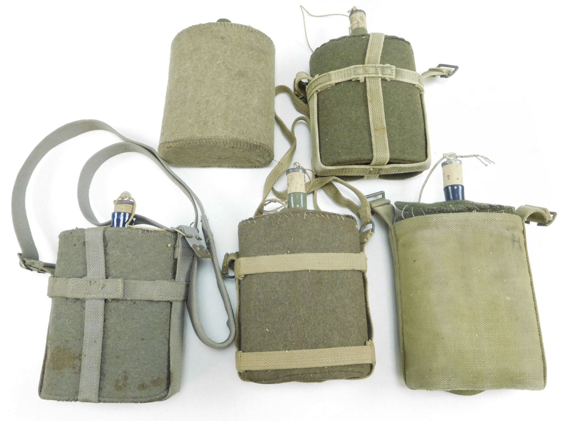 ASSORTED CANTEENS , WITH FELT/WOOL COVERS, (1) WITH STRAP STAMPED CANADIAN BROAD ARROW MARKED, Z.L.&TLTD 1943