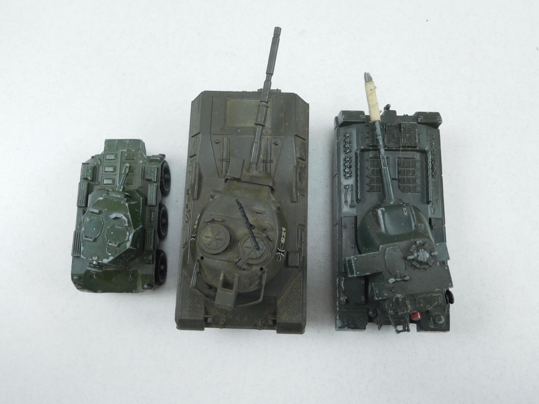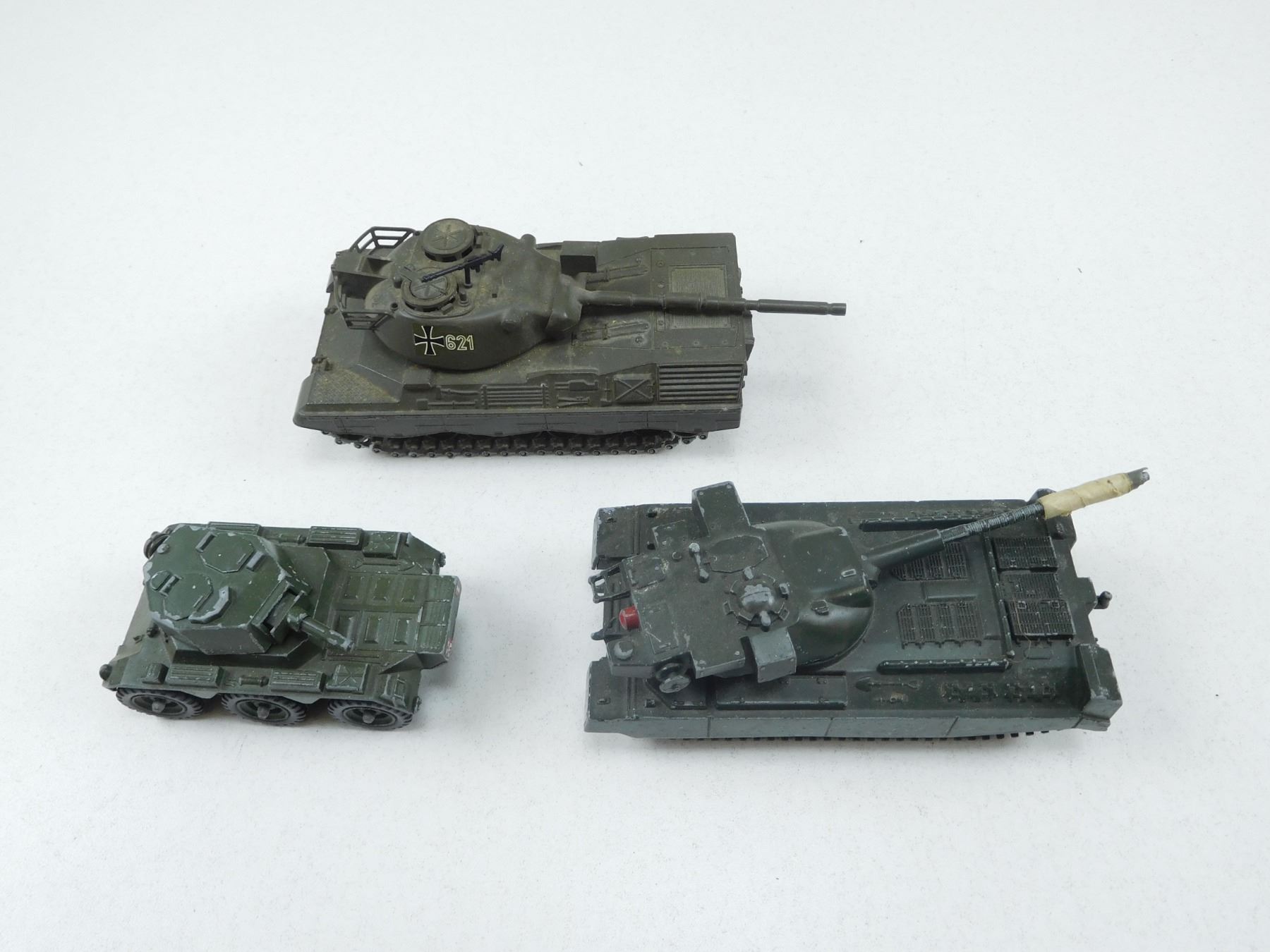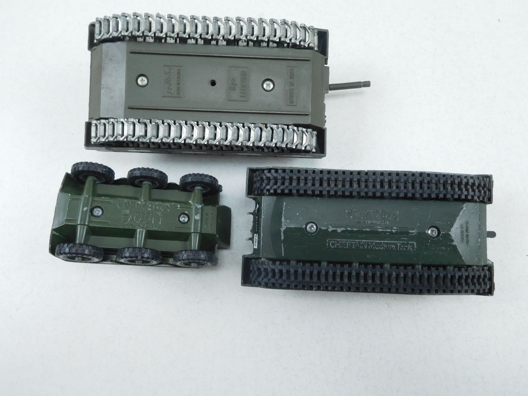 TOY MILITARY VEHICLES/TANKS , (1) CORGI TOYS ARMOURED CAR, (CORGI TOYS CHIEFTAIN MEDIUM TANK, (1) SOLIDO KPZ LEOPARD, LOT OF 3