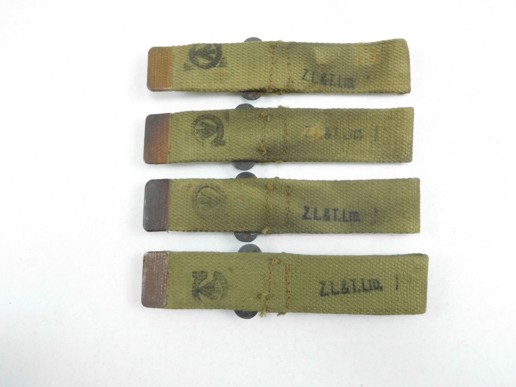 WWII STRAPS , ALL CANADIAN BROAD ARROW MARKED Z.L.&T.LTD. LOT OF 4