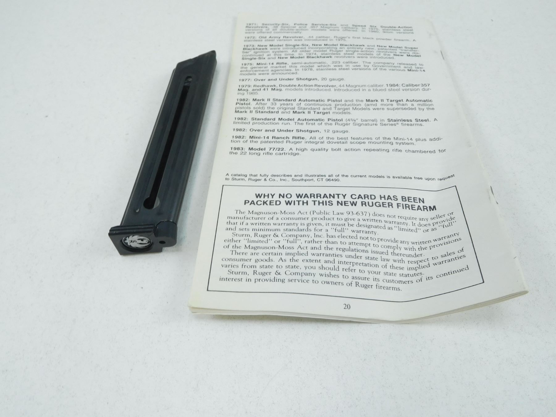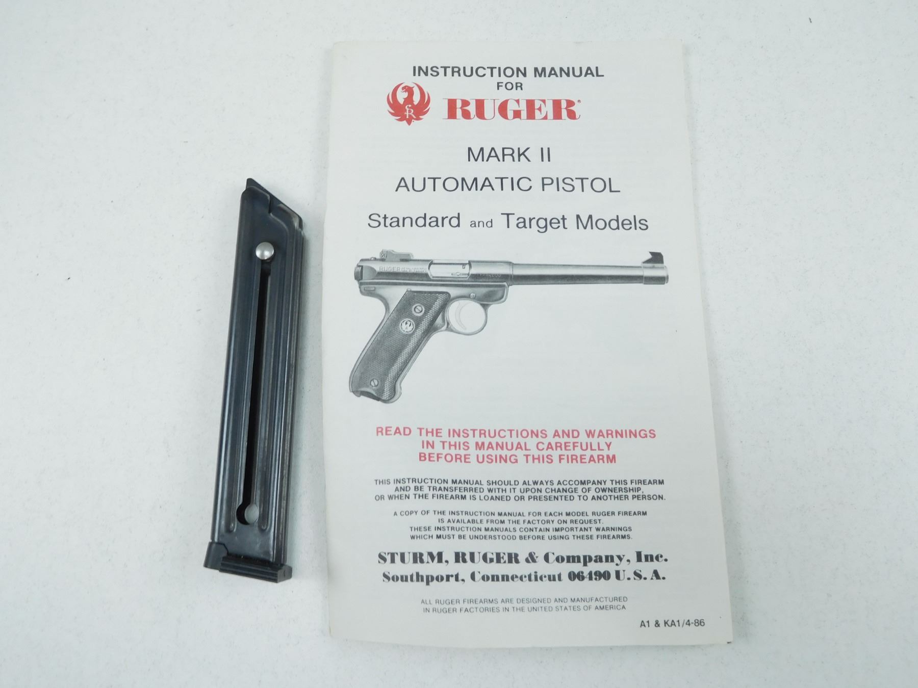 RUGER 22 MAGAZINE & MANUEL , FOR MARK II AUTOMATIC PISTOL STANDARD & TARGET MODELS