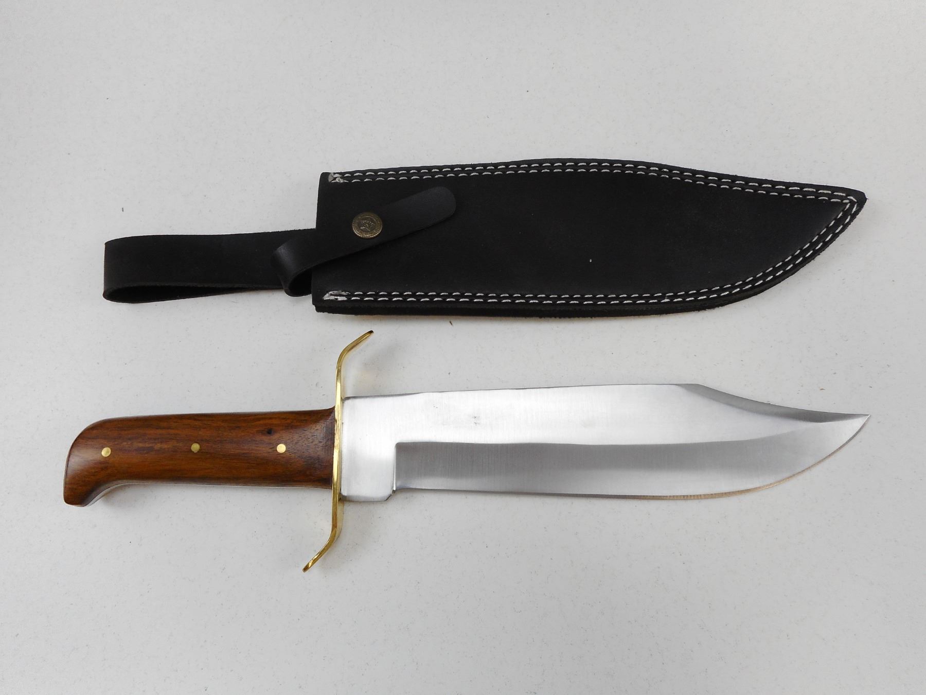 LARGE BOWIE KNIFE , GREAT SEAL OF THE STATE OF OAKLAHOMA 1907, WITH LEATHER SHEATH