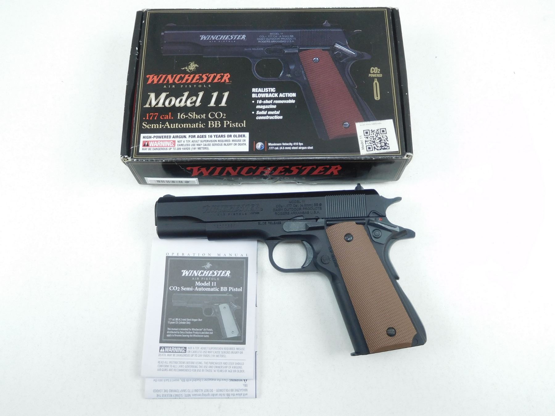 WINCHESTER MODEL 11 CO2 AIR PISTOL , .177 CAL 16-SHOT CO2, SEMI AUTO BB PISTOL, WITH BOX & MANUAL