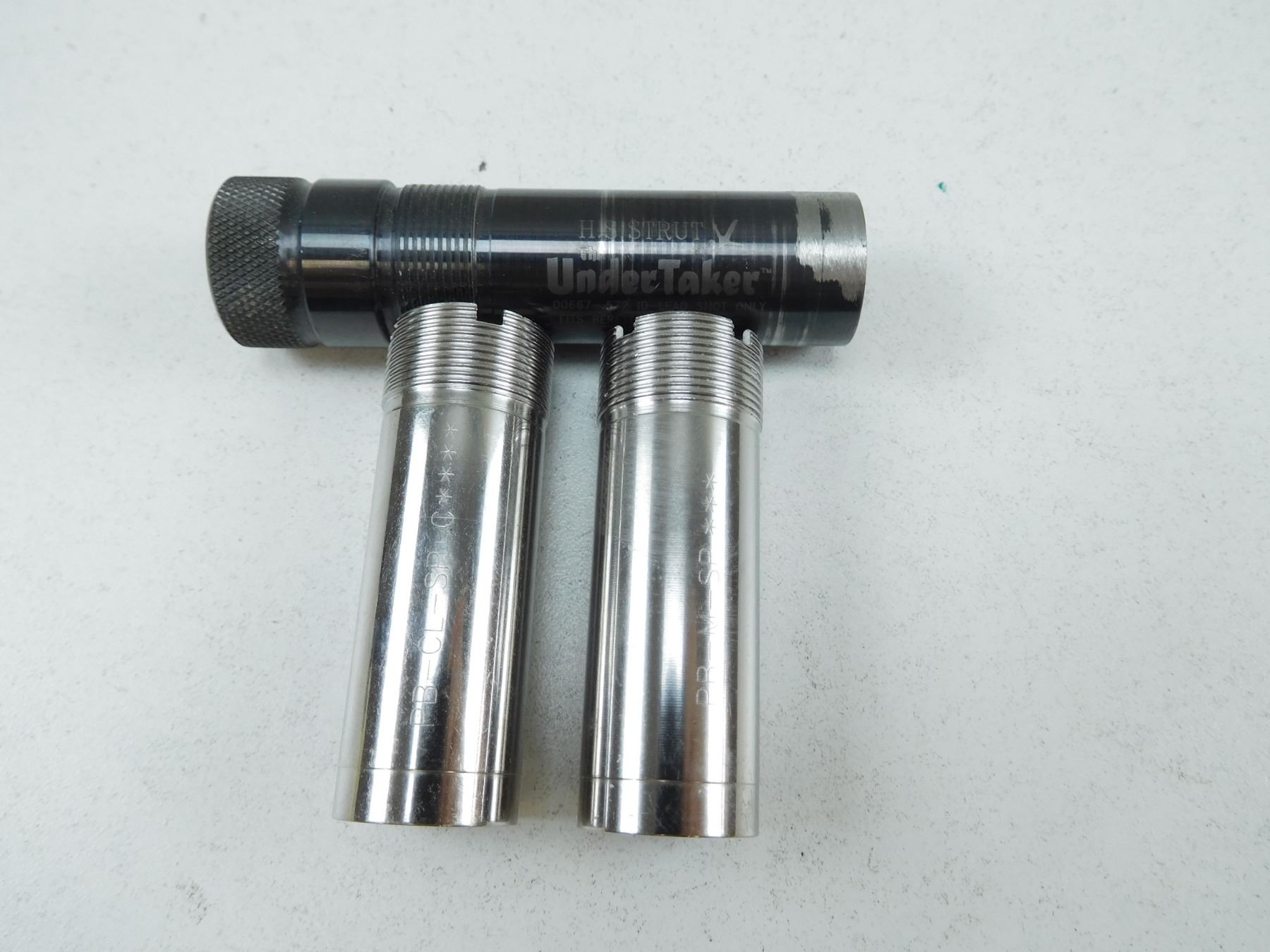 ASSORTED 20 GA CHOKE TUBES , (1) H.S. STRUT UNDERTAKER FOR BERETTA BENELLI 20 GA LEAD SHOT ONLY, (1) PB-CL-SP C, (1) PB-M-SP, LOT OF 3