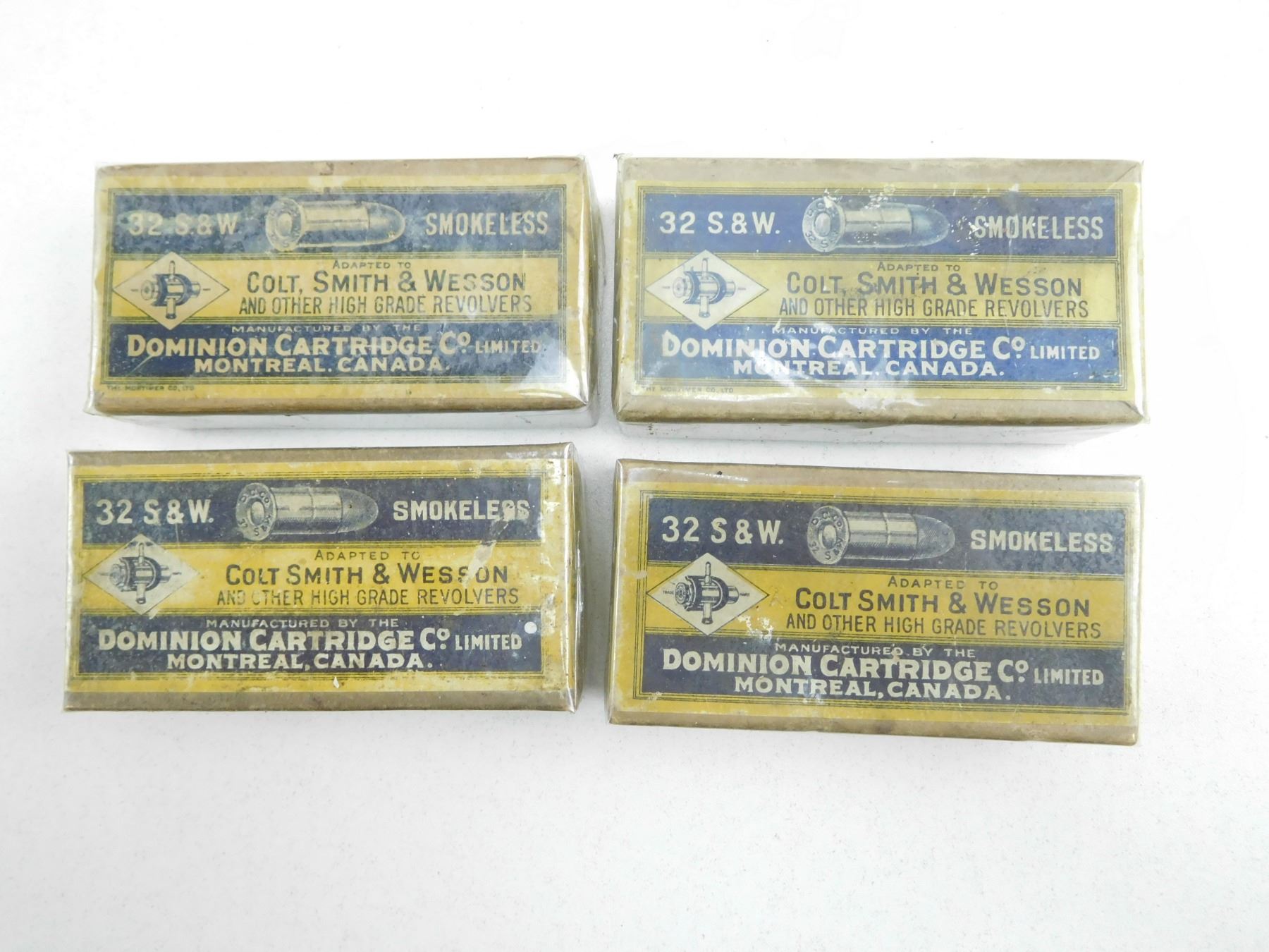 ASSORTED EMPTY AMMO BOXES , 32 S&W SMOKELESS BOXES, LOT OF 4