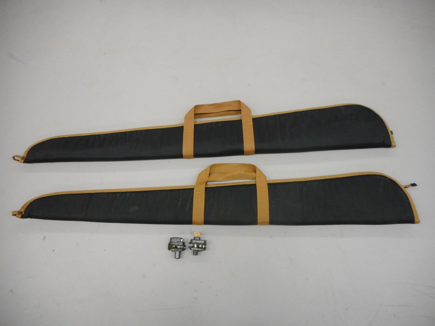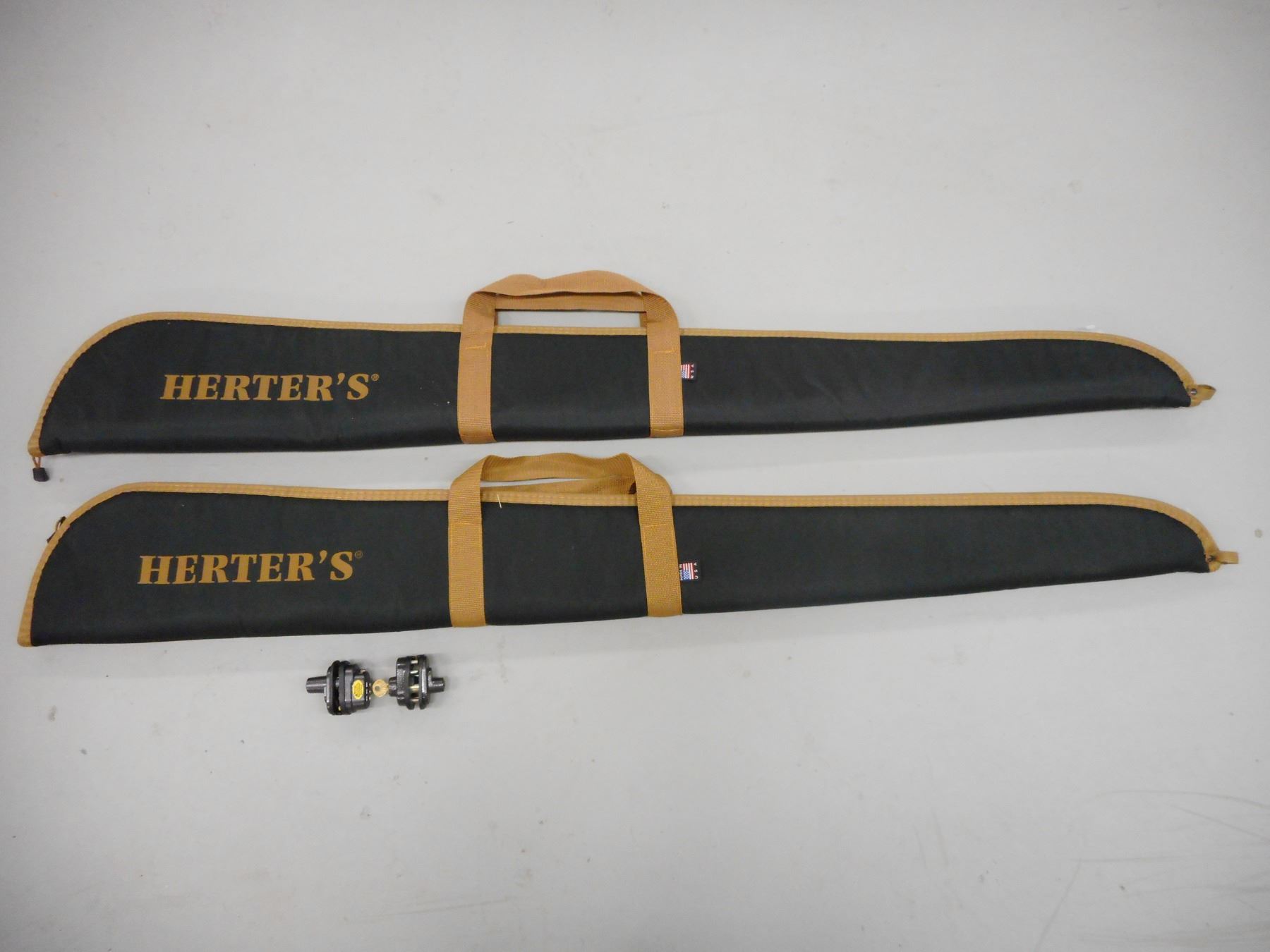 SOFT RIFLE CASES & TRIGGER LOCKS , (2) HERTER'S PADDED SOFT CASES, (2) TRIGGER LOCKS: (1) WITH KEYS, (1) COMBINATION 000