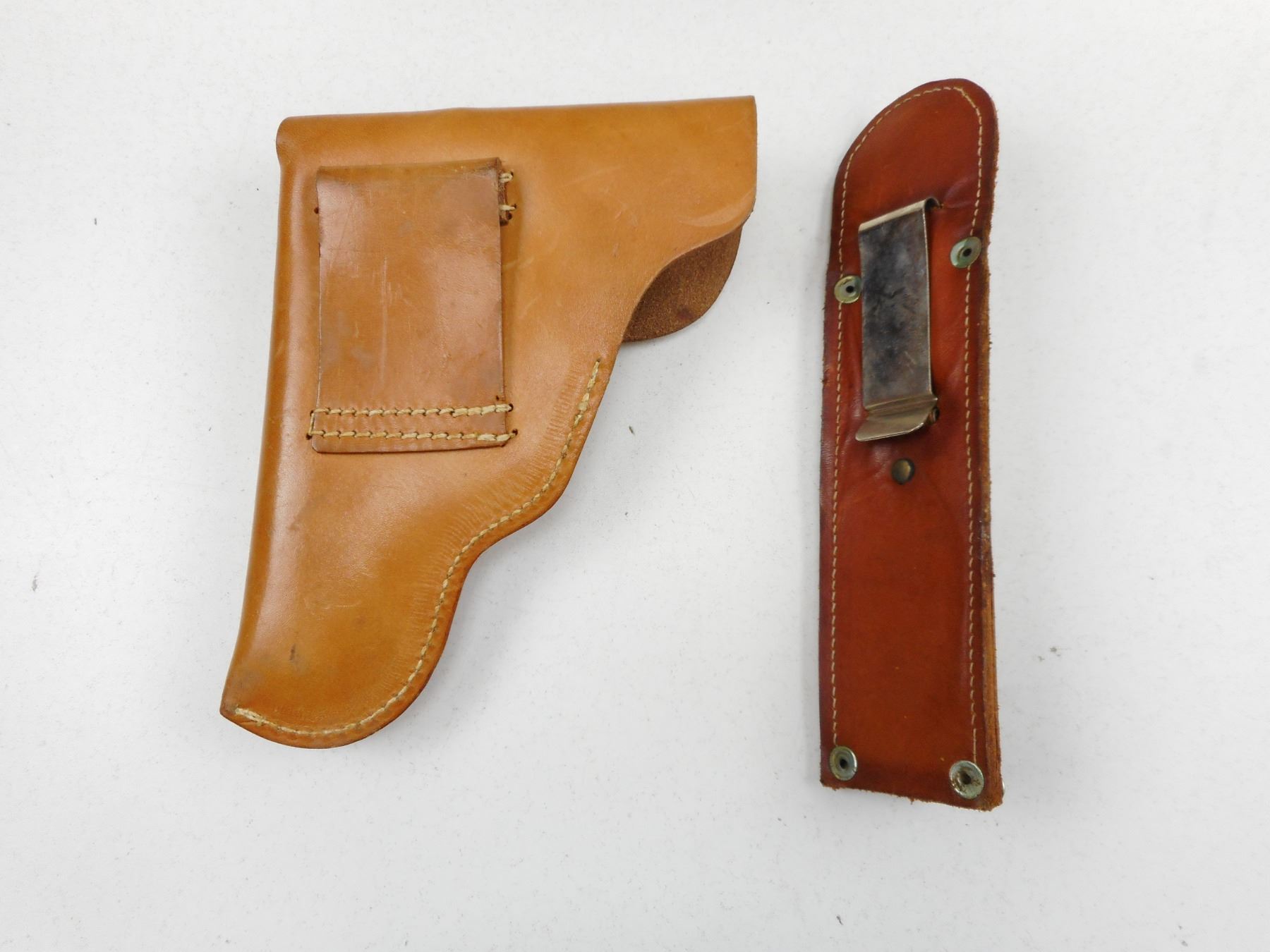 ASSORTED HOLSTERS , (1) LIGHT BROWN, (1) FLASHLIGHT HOLSTER, LOT OF 2