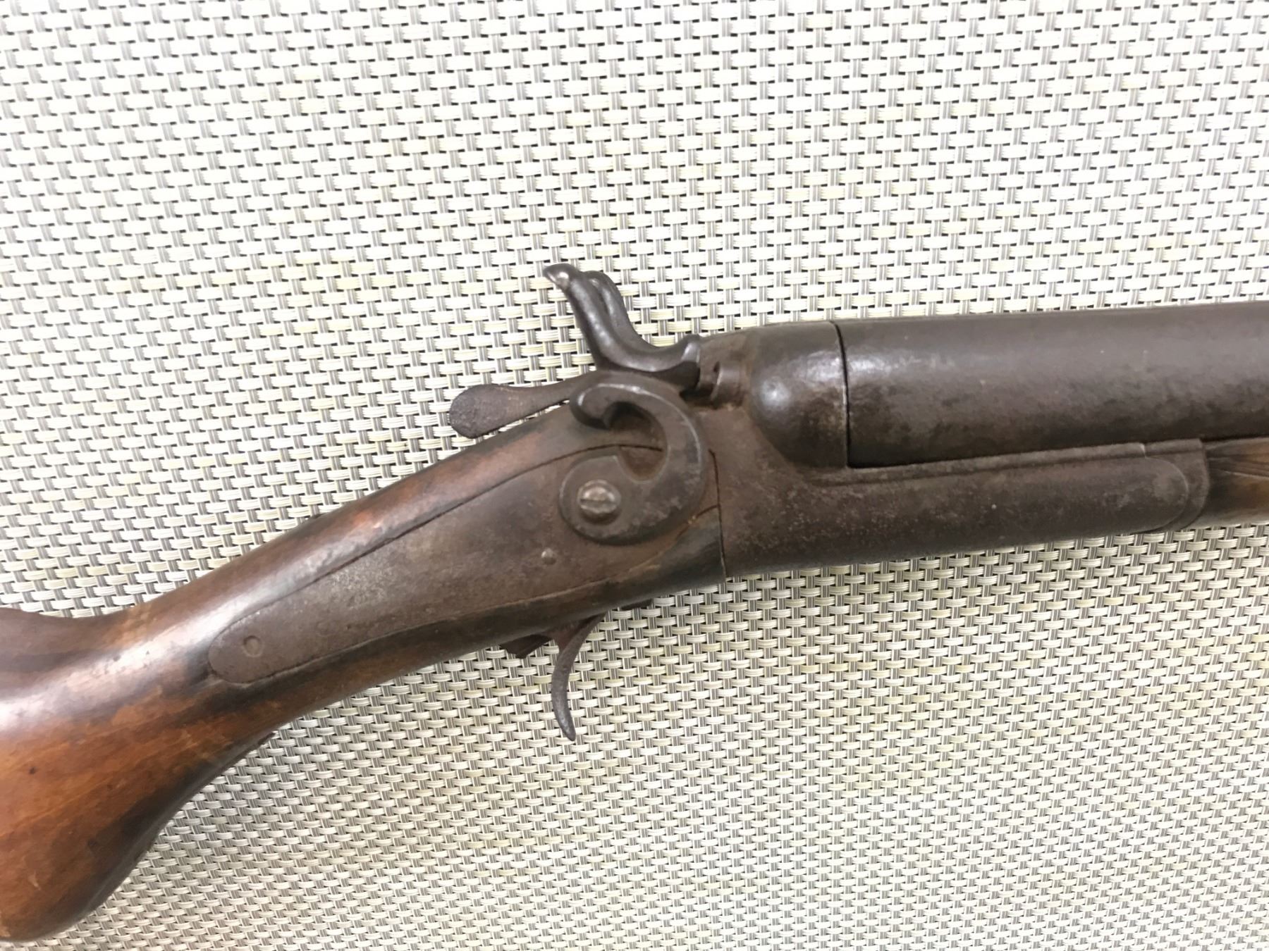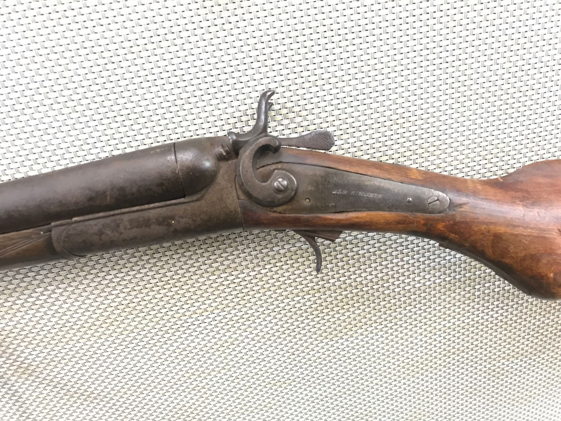 SIMINOS , SIDE BY SIDE , 12 BORE , NO TRIGGER GUARD, MISSING TRIGGER, BADLY CORRODED, INCOMPLETE, 30 1/2" BAREL , CONDITION: PARTS GUN, NO FURTHER INFORMATION AVAILABLE