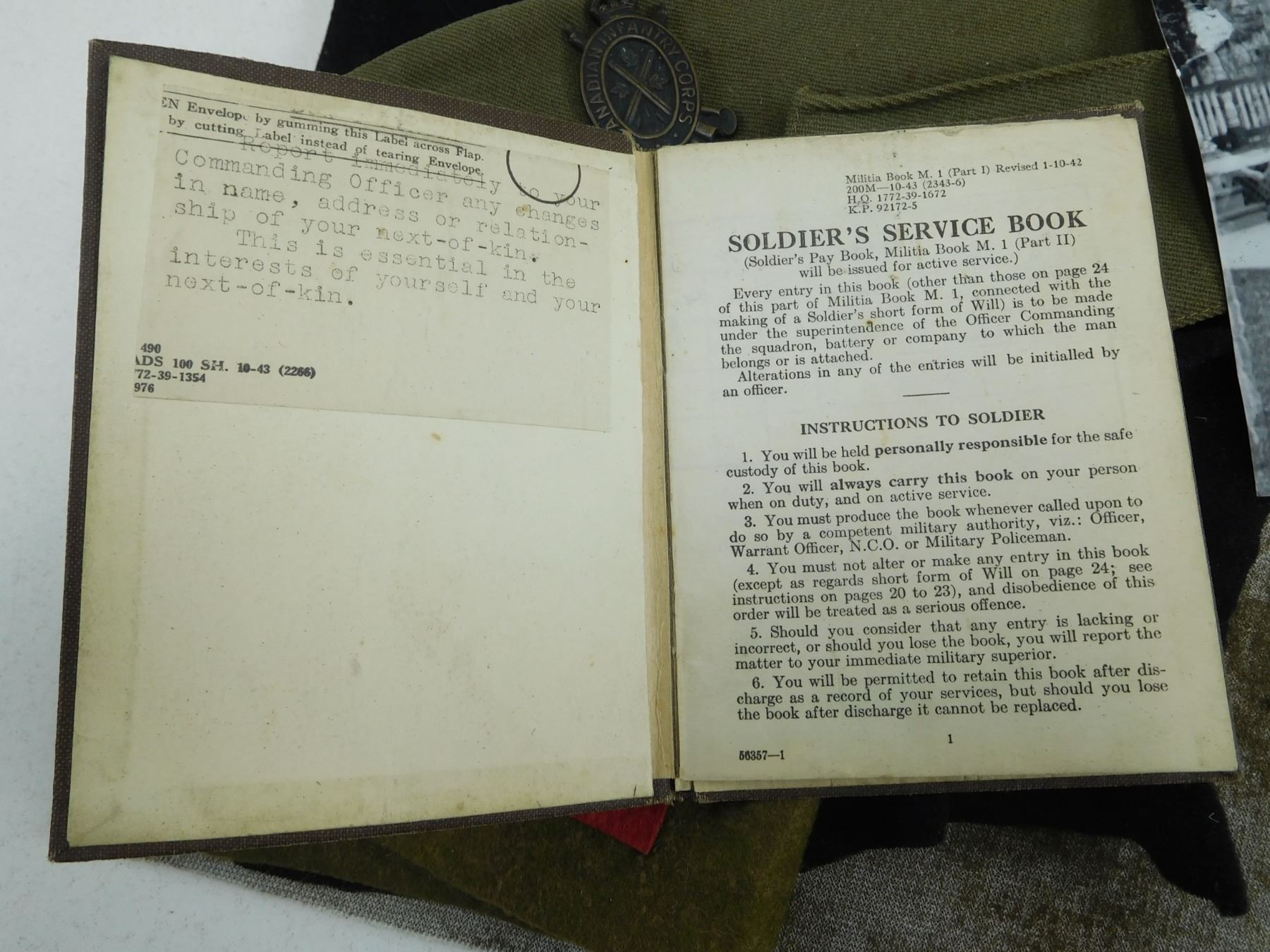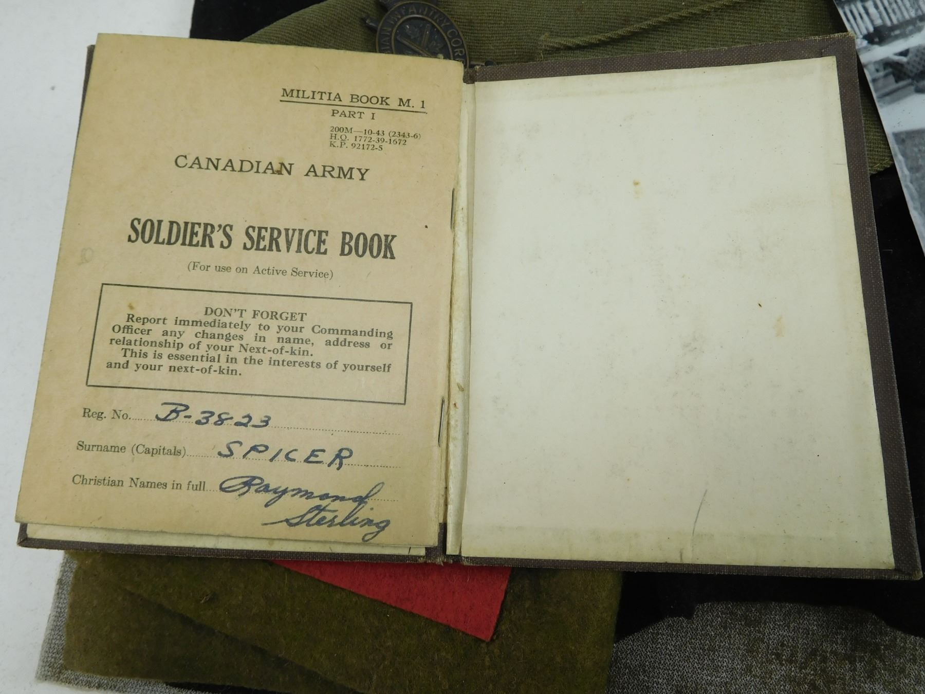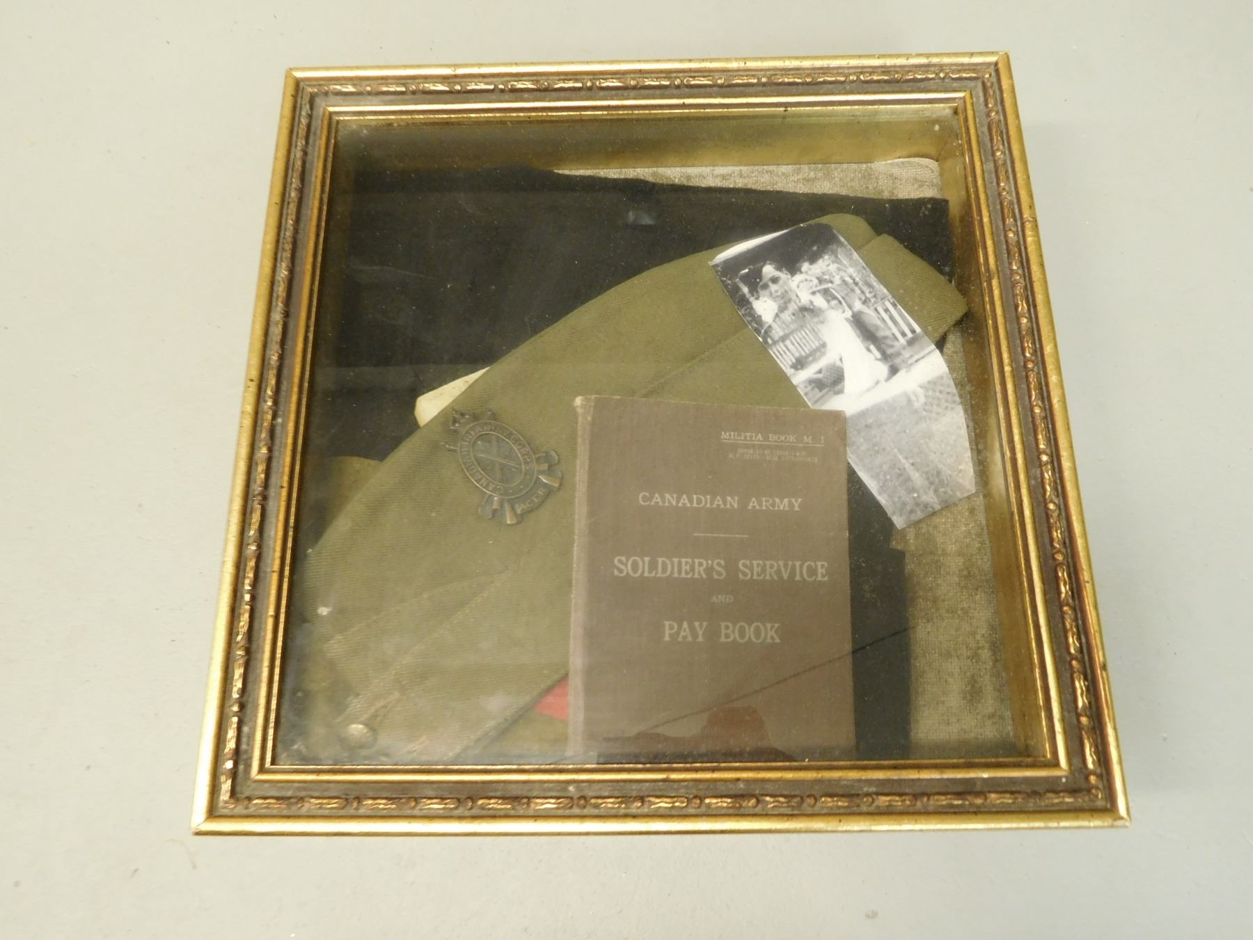 Lot 6200 SHADOW BOX INCLUDES CANADIAN ARMY SERVICE & PAY BOOK FOR RAYMOND SPICER B-3823