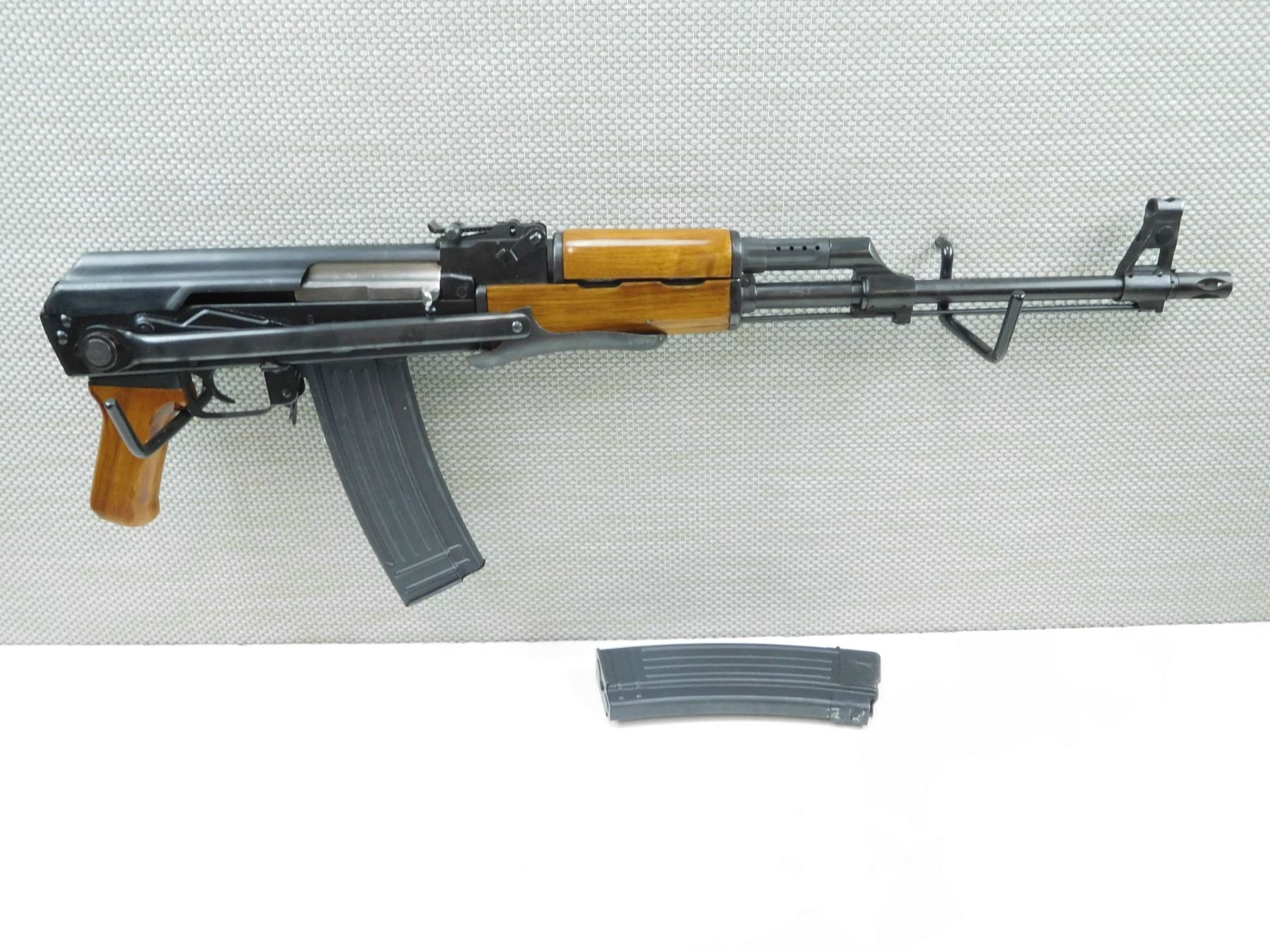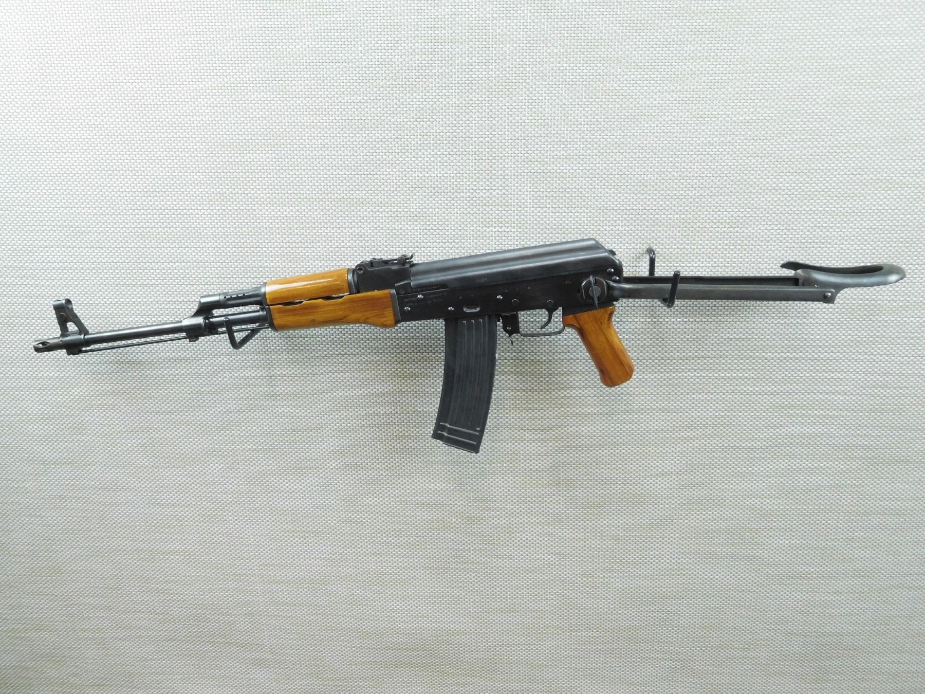 NORINCO , MODEL: 84S-1 , CALIBER: 5.56 , COMES WITH 2 MAGAZINES, HOODED FRONT AND TANGENT ADJUSTABLE REAR SIGHT, FLASH SUPRESSOR, FOLDING SKELETONIZED BUTT STOCK, PROHIBITED 12-5 CLASS SEMI AUTO RIFLE , BARREL LENGTH: 470MM , SERIAL # 8AL000457 , STOCK # 2159 , CONDITION: 9/10 , CLASS: CANADIAN PROHIBITED CLASS