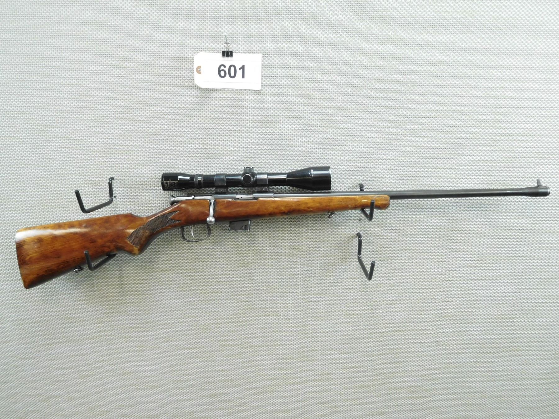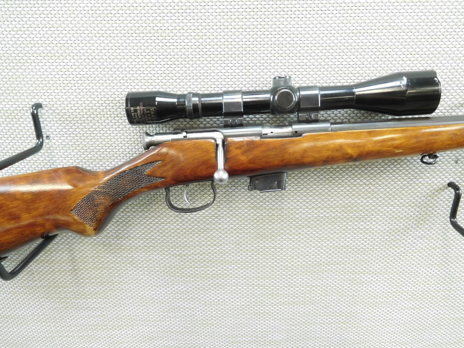 VOSTOCK , MODEL: TOZ , CALIBER: 22 LR , COMES WITH 2 MAGAZINES, FEATURES A TASCO 4 X 40 SCOPE ON WEAVER MOUNTS, NO SIGHTS, BORE IS VERY GOOD, CHECKERED SEMI PISTOL GRIP STOCK WITH SLING SWIVELS, STEEL BUTT PLATE, SHOWS SOME HANDLING MARKS AND HAS A CHIP IN THE TOE WOOD, BARREL IS SCRATCHED AND DENTED AT THE BREECH , BARREL LENGTH: 21" , SERIAL # 19692 , STOCK # 7970 , CONDITION: 6/10 , CLASS: CANADIAN NON RESTRICTED CLASS