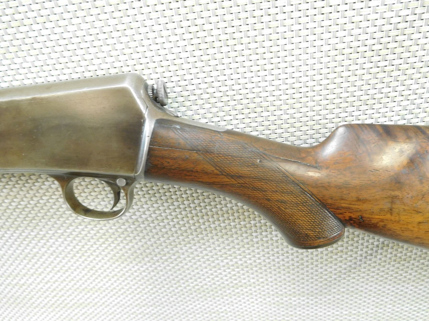 WINCHESTER/JGA , MODEL: SELF LOADING , CALIBER: 22 LR REBARRELLED , THIS ITEM HAS BEEN REBARRELLED WITH A JGA BARREL COMBINED WITH A WINCHESTER RECEIVER, TUBULAR MAGAZINE IN THE BUTT, DOVETAIL FRONT AND ADJUSTABLE REAR SIGHTS, CHECKERED FOREND AND CAPPED PISTOL GRIP BUTT STOCK, STOCK IS CRACKED AT THE WRIST, CHIPPED AT THE TOE, SHOWS EXTENSIVE HANDLING MARKS AND FINISH WEAR, BORE IS DARK , BARREL LENGTH: 18" , SERIAL # 42093 , STOCK # 7977 , CONDITION: 5/10 , CLASS: CANADIAN NON RESTRICTED CLASS