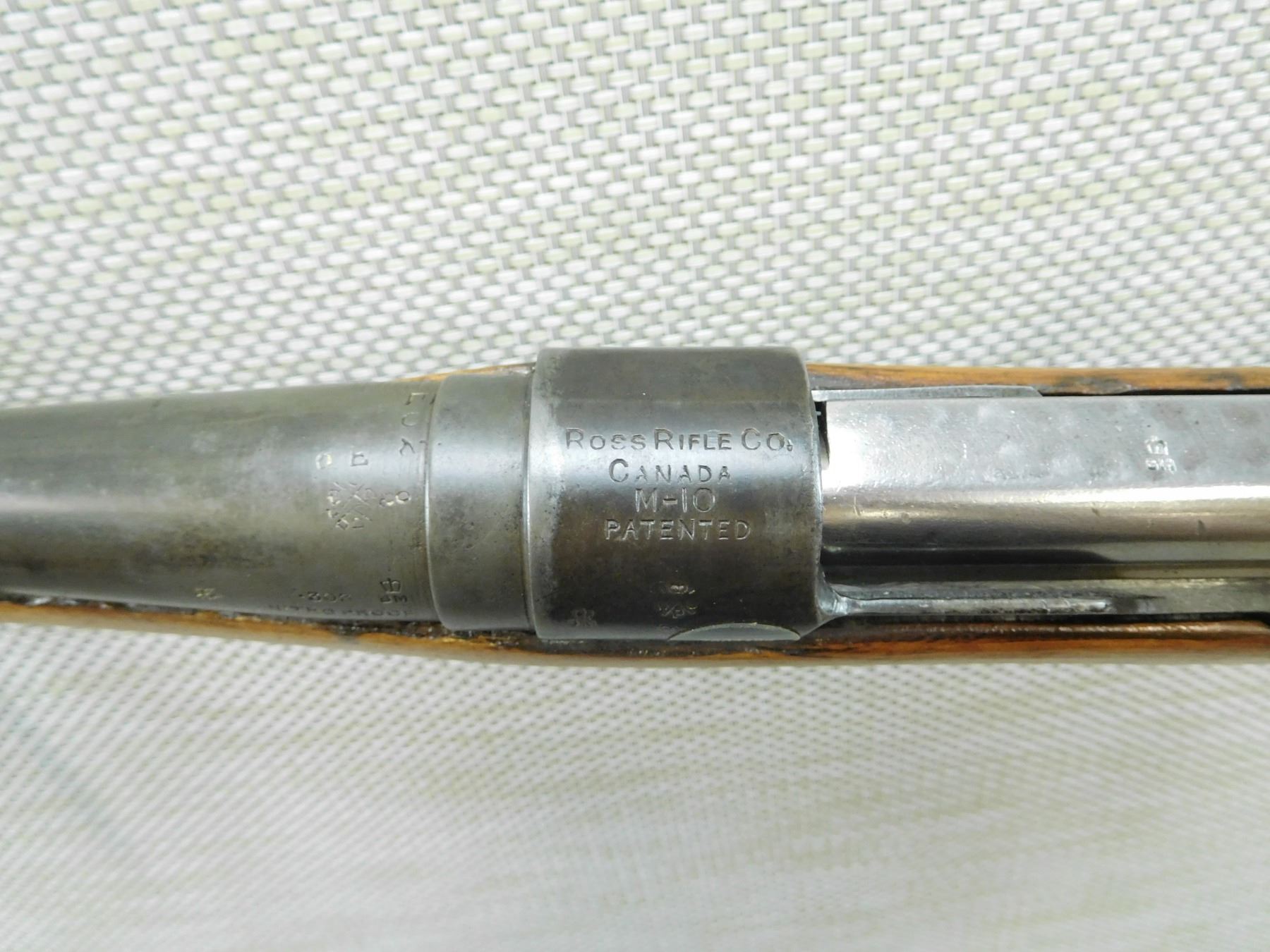 ROSS RIFLE , MODEL: 1910 SPORTER , CALIBER: 303 BR , COMES WITH MAGAZINE, HOODED FRONT SIGHT AND PEEP APERTURE REAR SIGHT RETAINS ORIGINAL ROSS REAR MILITARY SIGHT, VERY GOOD BORE, VENTED RUBBER RECOIL PAD, SHOWS EXTENSIVE HANDLING MARKS , BARREL LENGTH: 26" , SERIAL # N/A , STOCK # 8009 , CONDITION: 4/10 , CLASS: CANADIAN NON RESTRICTED CLASS