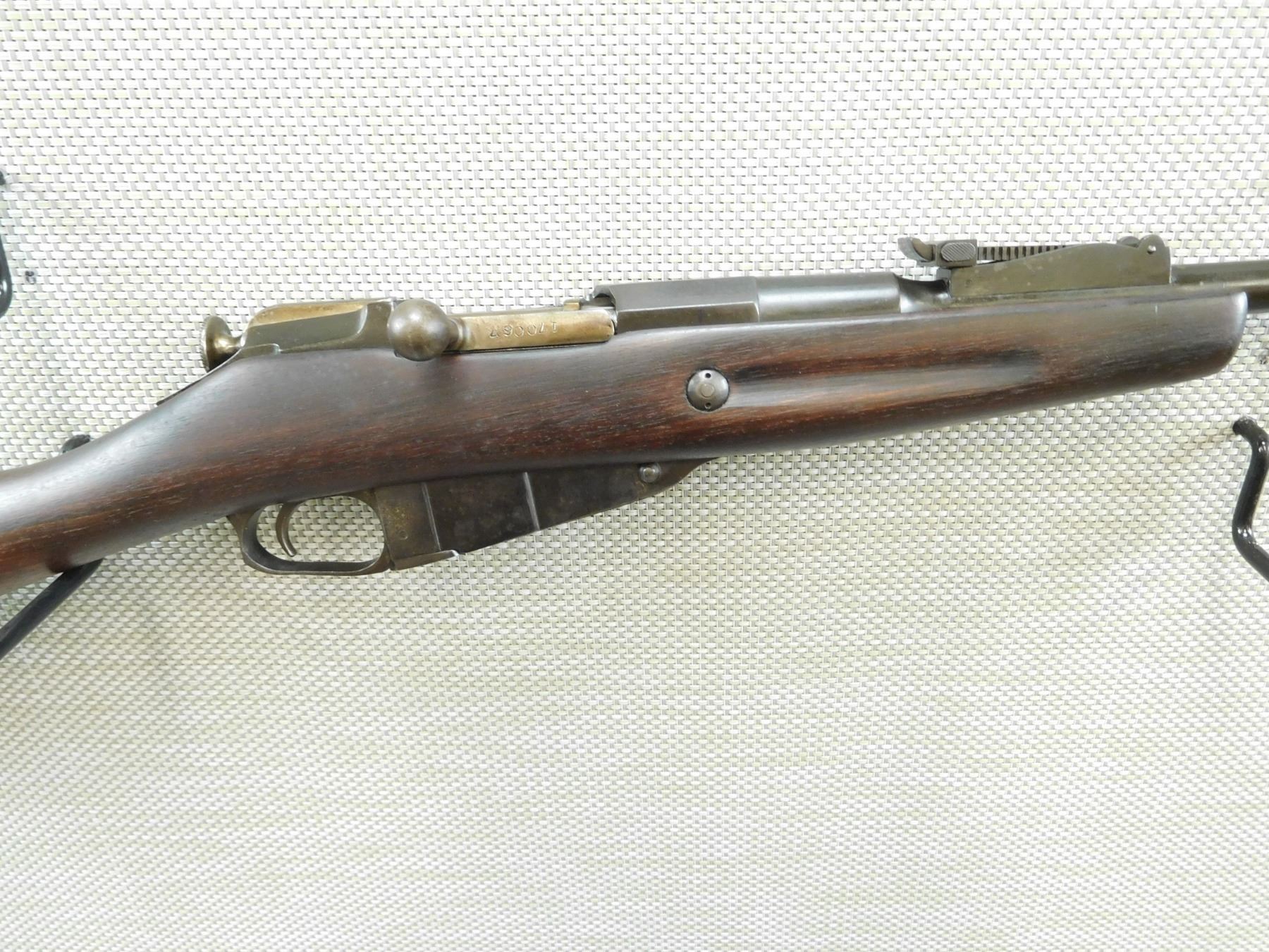 MOSIN NAGANT , MODEL: SPORTER , CALIBER: 7.62 X 54R , DATED 1933, GOOD BORE, MISMATCHED BOLT, RAISED FRONT AND FULLY ADJUSTABLE REAR SIGHT, SHOWS SOME HANDLING MARKS , BARREL LENGTH: 22" , SERIAL # 8353 , STOCK # 8013 , CONDITION: 4/10 , CLASS: CANADIAN NON RESTRICTED CLASS