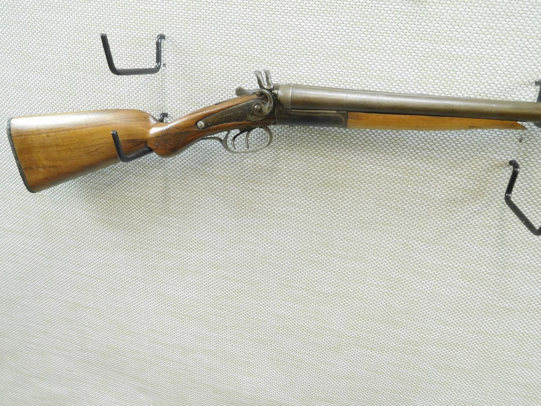 JANSON & SONS , MODEL: SIDE BY SIDE , CALIBER: 12GA X 2 1/2" , FIXED FULL AND MODIFIED CHOKES, BORES ARE GOOD, SIDE LOCK RETAINING SCREW HAS BEEN REPLACED, SHOWS EXTENSIVE HANDLING MARKS, REPLACED STEEL BUTT PLATE, ACTION IS LOOSE , BARREL LENGTH: 30" , SERIAL # 11455 , STOCK # 8017 , CONDITION: 4/10 , CLASS: CANADIAN NON RESTRICTED CLASS