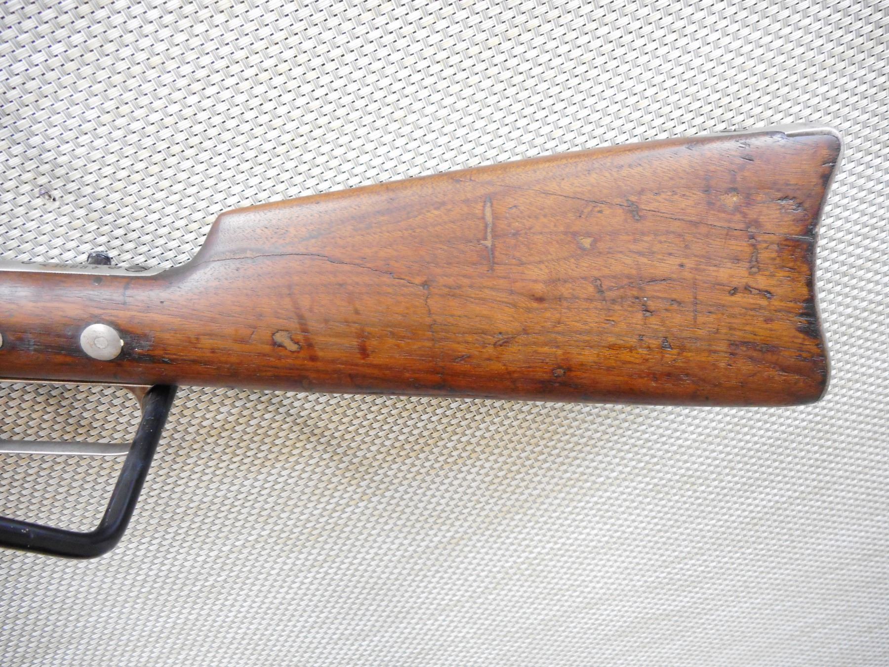 MARLIN , MODEL: 1893 SADDLE RING CARBINE , CALIBER: 38-55 WIN , BORE IS DARK, SHOWS EXTENSIVE HANDLING MARKS, BLADE FRONT AND ADJUSTABLE REAR SIGHT, MISSING THE SADDLE RING AND STUD, STOCK HAS BEEN REPAIRED, ALL METAL SURFACES ARE PITTED WITH VERY LITTLE FINISH REMIANING, BUTT STOCK IS CRACKED, DRILLED AND TAPPED FOR SCOPE MOUNTS , BARREL LENGTH: 20" , SERIAL # 440174 , STOCK # 8041 , CONDITION: 4/10 , CLASS: CANADIAN NON RESTRICTED CLASS