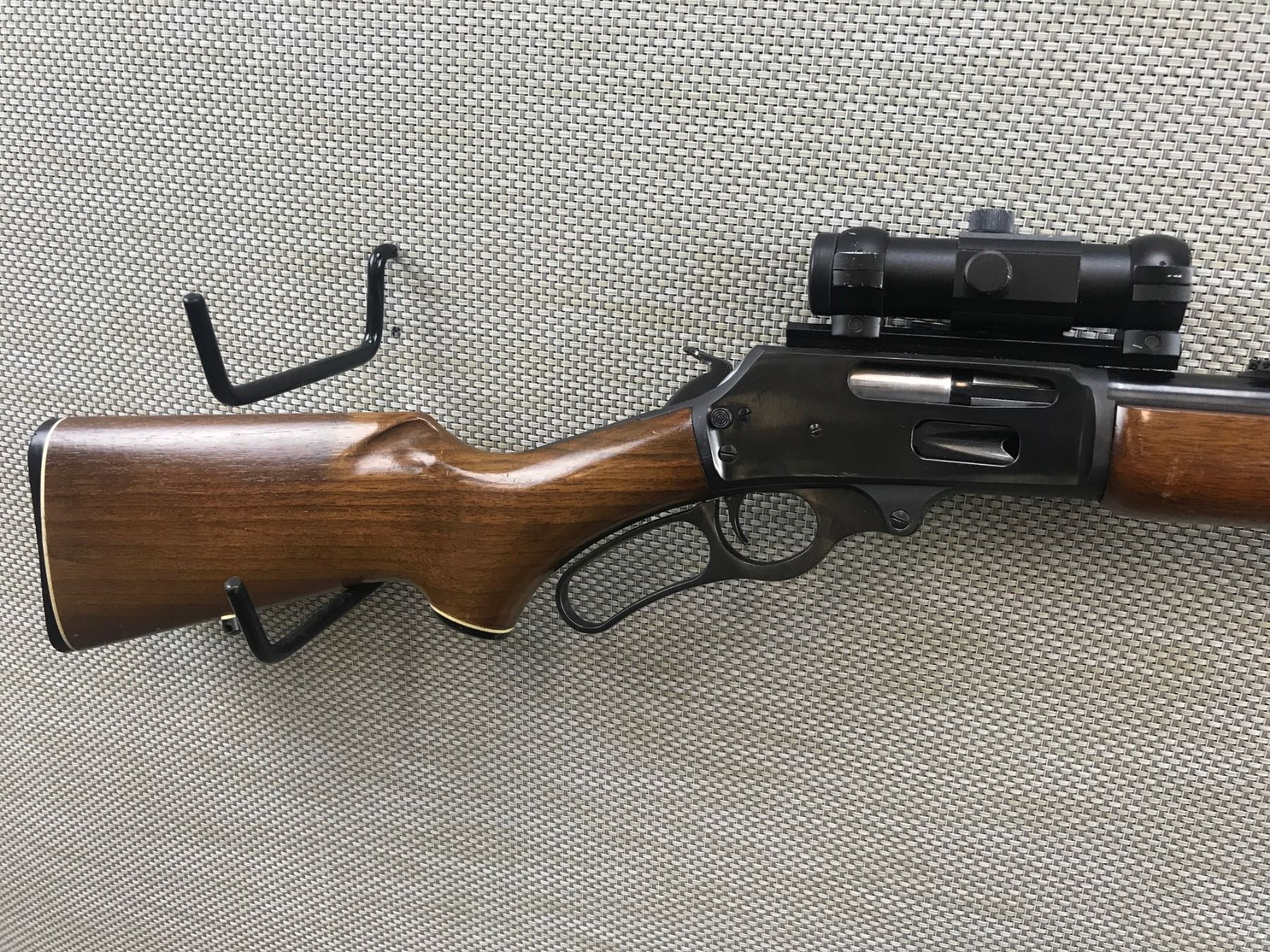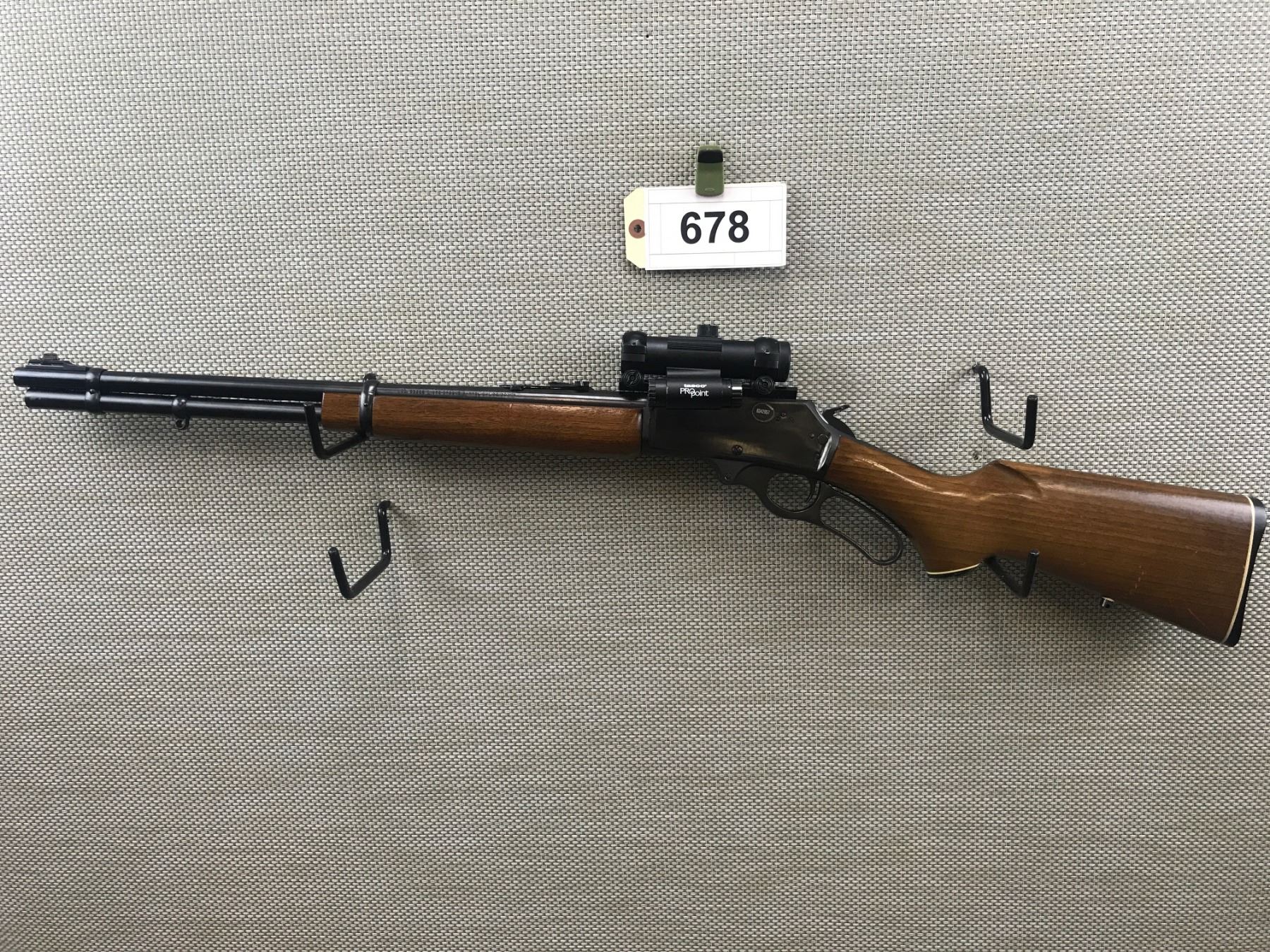 MARLIN , MODEL: 336CS , CALIBER: 30-30 WIN , EXCELLENT BORE, TUBULAR MAGAZINE, RAMP FRONT AND FLIP ADJUSTABLE REAR SIGHT, EQUIPPED WITH A TASCO PRO POINT SIGHT, SHOWING VERY LITTLE HANDLING MARKS, CAPPED PISTOL GRIP STOCK WITH RUBBER RECOIL PAD AND WHITE LINE SPACER , BARREL LENGTH: 20" , SERIAL # 14079678 , STOCK # 8047 , CONDITION: 8/10 , CLASS: CANADIAN NON RESTRICTED CLASS