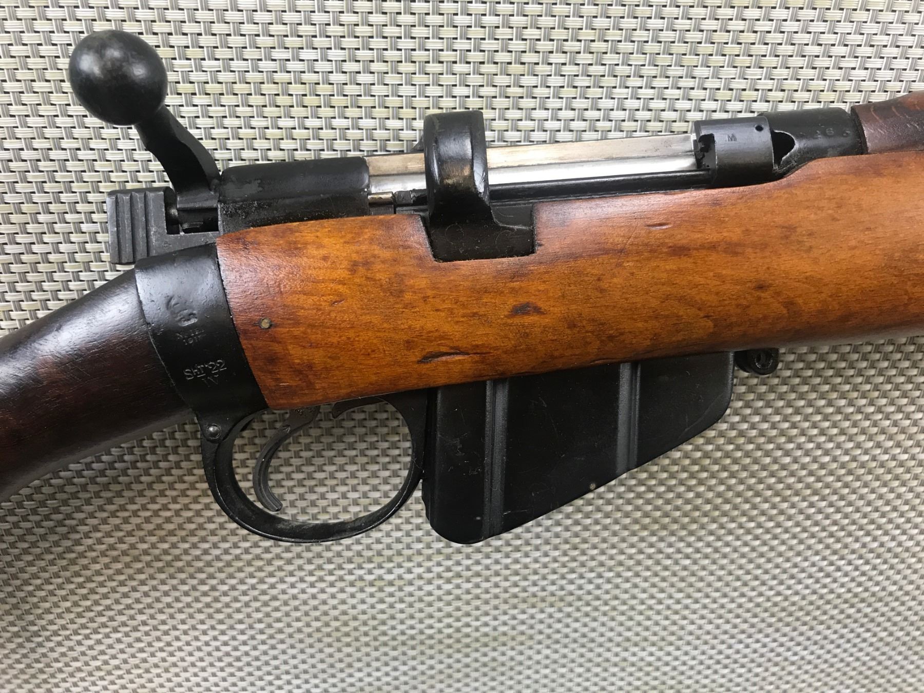 LEE ENFIELD , MODEL: NO 1 MKIII , CALIBER: 303 BR , COMES WITH MAGAZINE, WWI ERA MADE AT ENFIELD IN 1917, FACTORY FTR IN 1953, VERY GOOD BORE, MATCHING BOLT SERIAL NUMBER, RETAINS FULL MILITARY CONFIGURATION , BARREL LENGTH: 25 1/2" , SERIAL # A263 , STOCK # 8074 , CONDITION: 7/10 , CLASS: CANADIAN NON RESTRICTED CLASS