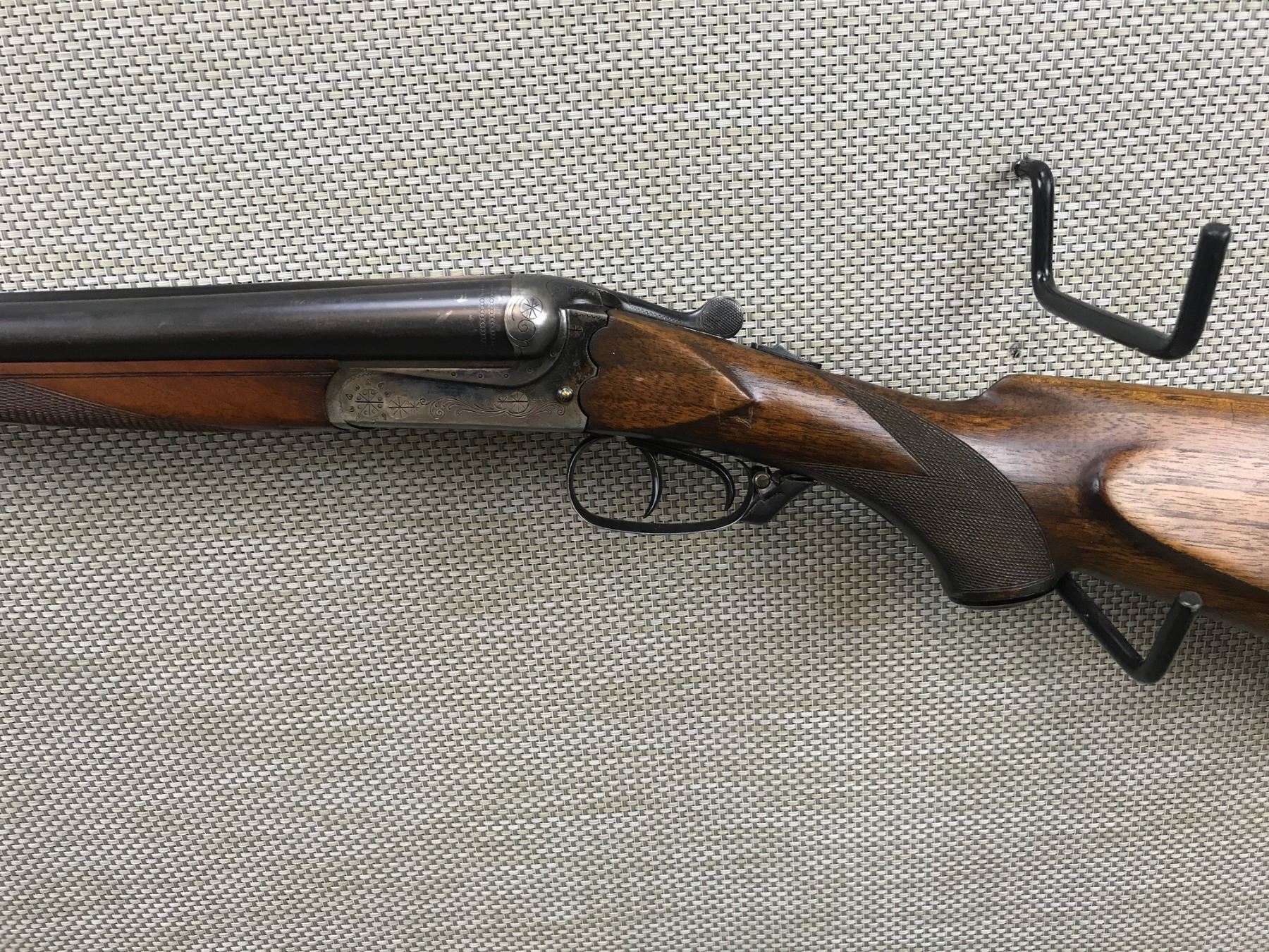 MERKEL , MODEL: SIDE BY SIDE , CALIBER: 12GA X 3" , FIXED FULL AND MODIFIED CHOKES, BORES ARE VERY GOOD, COCKING INDICATORS, CHECKERED FOREND AND CAPPED PISTOL GRIP BUTT STOCK WITH PLASTIC BUTT PLATE, SLING SWIVELS, CASE HARDENED BOX LOCK, BEAD FRONT AND MID SIGHTS, SHOWS SOME HANDLING MARKS , BARREL LENGTH: 28" , SERIAL # 610382 , STOCK # 8081 , CONDITION: 7/10 , CLASS: CANADIAN NON RESTRICTED CLASS