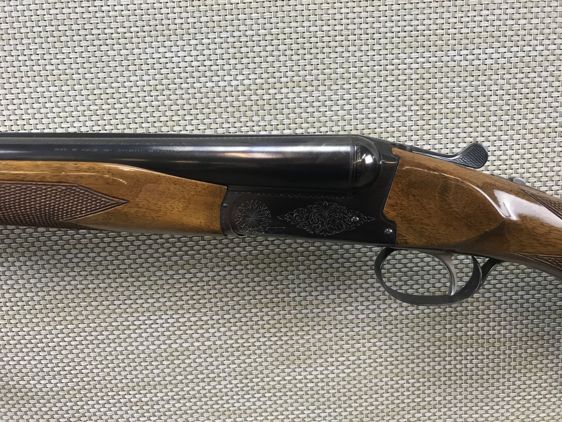 BROWNING , MODEL: SIDE BY SIDE , CALIBER: 12GA X 3" , COMES WITH MANUAL, FIXED FULL AND MODIFIED CHOKES, BEAVERTAIL FOREND, BORES ARE EXCELLENT, LIGHTLY ENGRAVED RECEIVER, CHECKERED FOREND AND SEMI PISTOL GRIP BUTT STOCK WITH PLASTIC BUTT PLATE, SLING SWIVEL LOOPS, BEAD FRONT SIGHT, SHOWS SOME HANDLING MARKS , BARREL LENGTH: 26" , SERIAL # 01557RT158 , STOCK # 8087 , CONDITION: 8/10 , CLASS: CANADIAN NON RESTRICTED CLASS