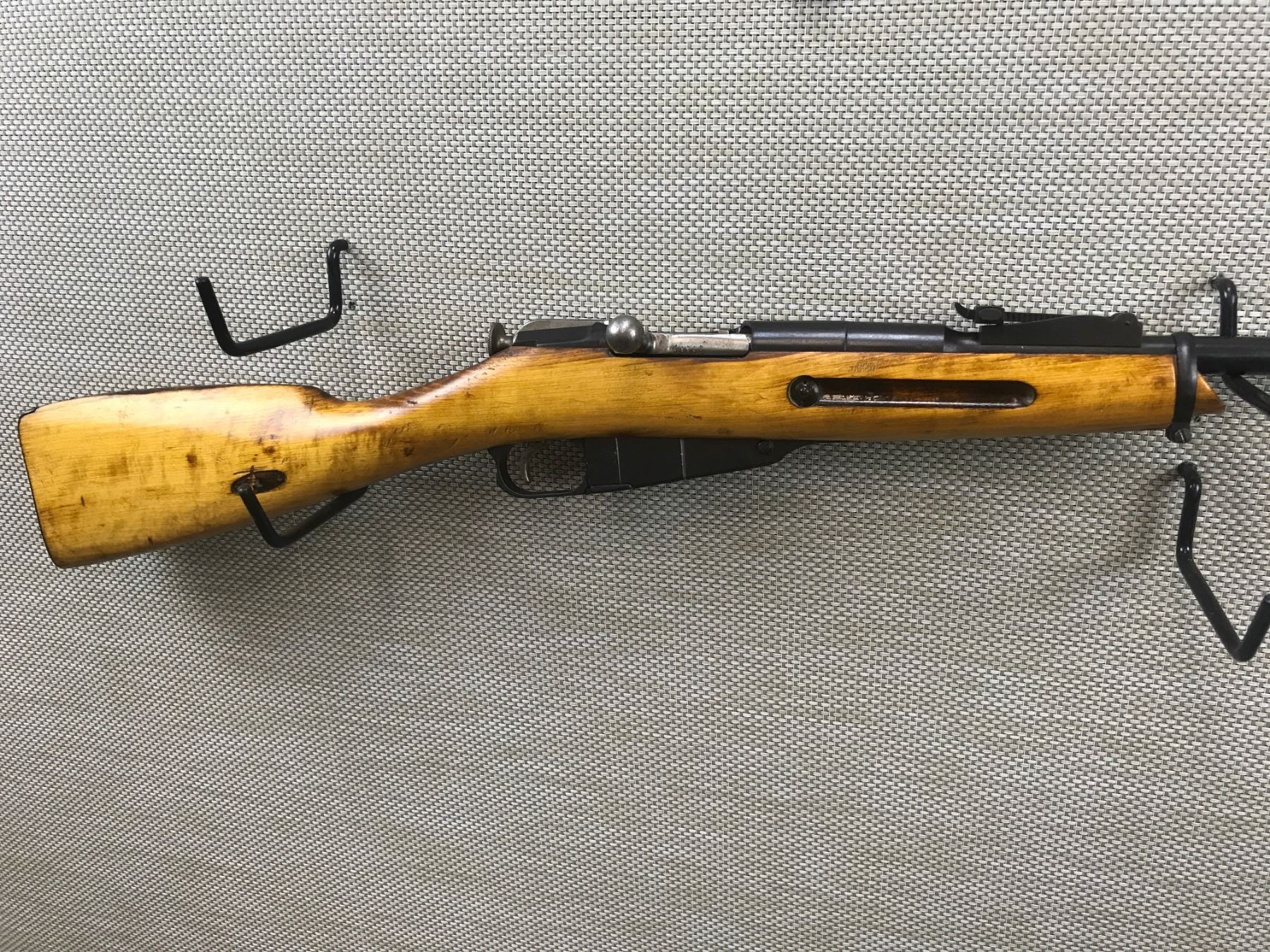 MOSIN NAGANT , MODEL: 91/30 SPORTER , CALIBER: 7.62 X 54R , MISMATCHED BOLT SERIAL TO RECEIVER, DOVETAIL FRONT AND ADJUSTABLE REAR SIGHT, BORE IS DARK, SHOWS SOME HANDLING MARKS, MISSING THE SLING SWIVEL LOOPS, STEEL BUTT PLATE , BARREL LENGTH: 22" , SERIAL # 9185 , STOCK # 8095 , CONDITION: 4/10 , CLASS: CANADIAN NON RESTRICTED CLASS