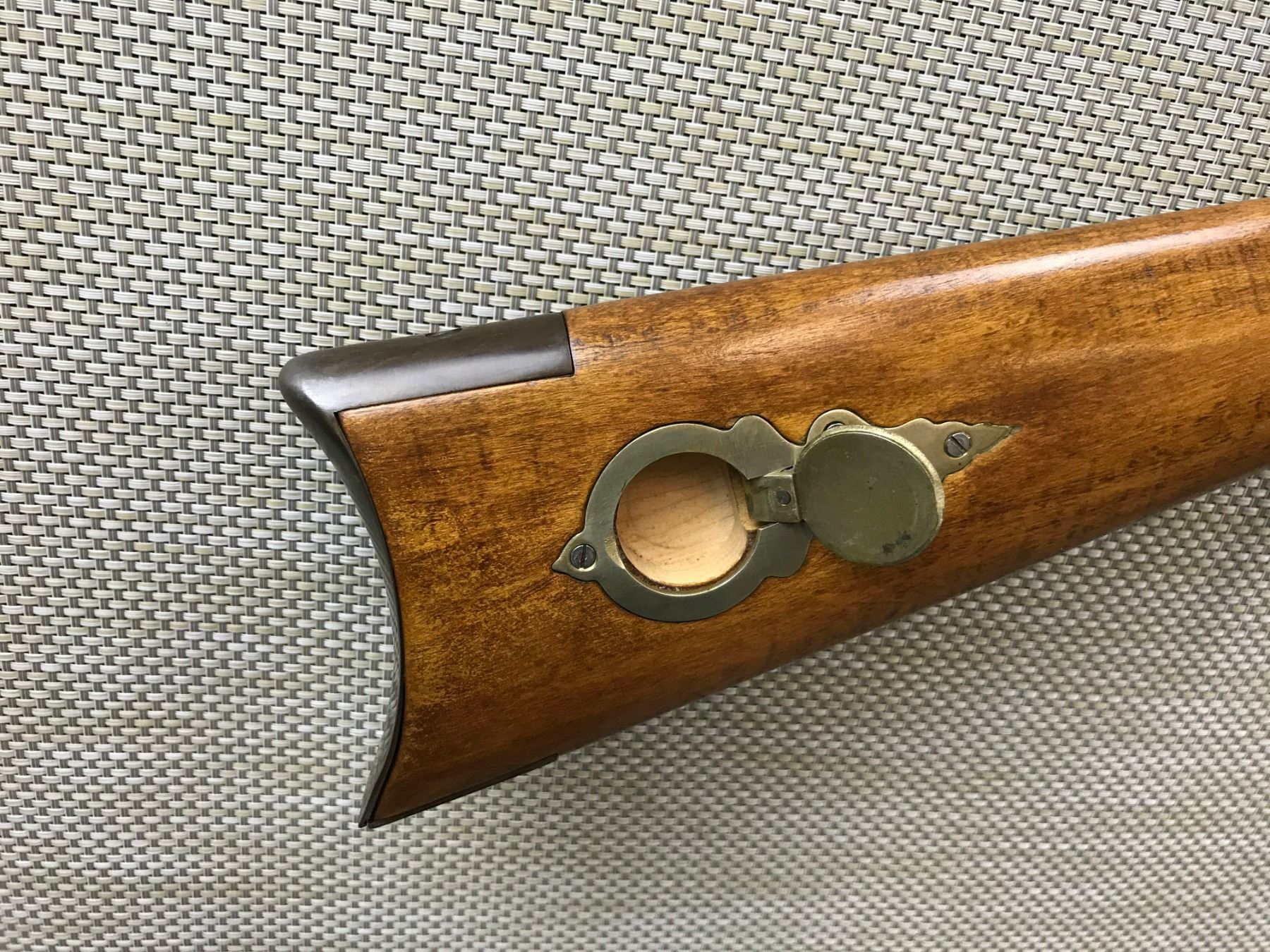 CVA , MODEL: HAWKEN STYLE , CALIBER: 50 CAL PERC , FULL OCTAGONAL BARREL, VERY GOOD BORE, BLADE FRONT AND ADJUSTABLE REAR SIGHT, RAM ROD, STEEL TRIGGER GUARD AND BUTT PLATE, BRASS PATCH BOX, SET TRIGGER WITH FANCY TRIGGER GUARD , BARREL LENGTH: 31" , SERIAL # 0077339 , STOCK # 8152 , CONDITION: 7/10 , CLASS: CANADIAN NON RESTRICTED CLASS